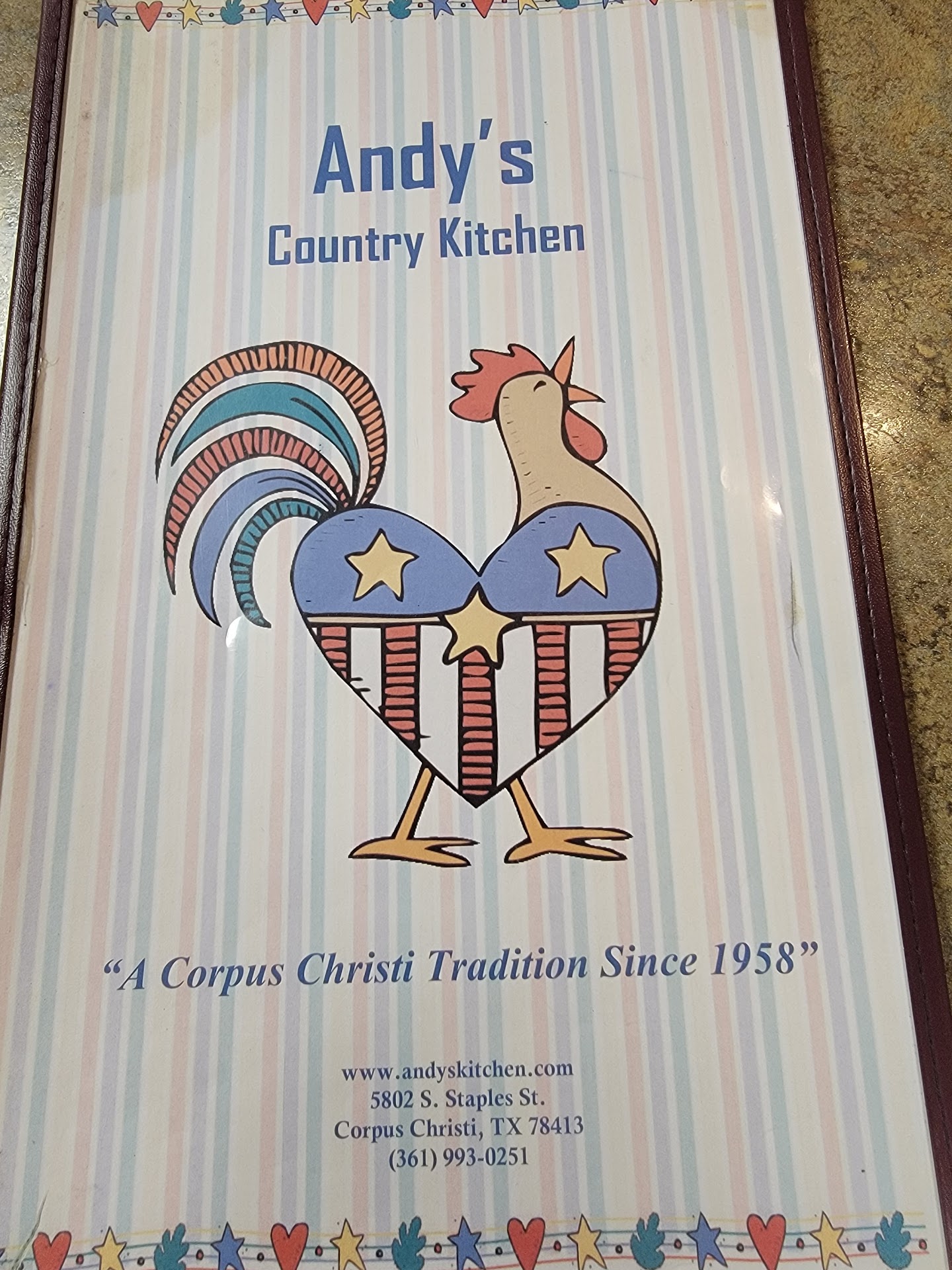I have lived in Corpus Christi 10 years and have dined at many different restaurant venues. HANDS DOWN Andy's kitchen was the absolute best experience I've ever had here to date. The Server Omar was FANTASTIC!! Not once did I have to ask him for anything he was on topof every thing from drink refills to clearing plates away which was Excellent because there was a 30 minute wait for a table my party was seated at the counter and space was minimal but Omar who had a fair amount of tables to tend to was never lacking.I myself have worked in food service for the better part of my adult life (30 years give or take) I've covered every position there is from the foh (front of house) to the boh (back of house) and everything in between. I've worked with as many different kinds of people as you can imagine from wait staff to management and never in all my time working have I seen or visited a more comfortingly quaint dining establishment. Andy's has an old thyme theme to it (a bit like Cracker Barrel) like many others, but where so many others fall short Andy's comes off as genuinely authentic. The ambiance of the place gave me a deeply nostalgic feeling like I was back home in the small country towns of Johnson County where I spend the vast majority of my life. I don't Normally go to such lengths to acknowledge people in this way but Andy's Kitchen left me with the most pleasant feeling I've ever experienced and I felt they needed to be recognized as small a thing as my opinion is I was Thoroughly impressed. Andy's you just got a lifelong customer. Thanks to everyone on staff for creating such an enjoyable experience. Sincerely,...