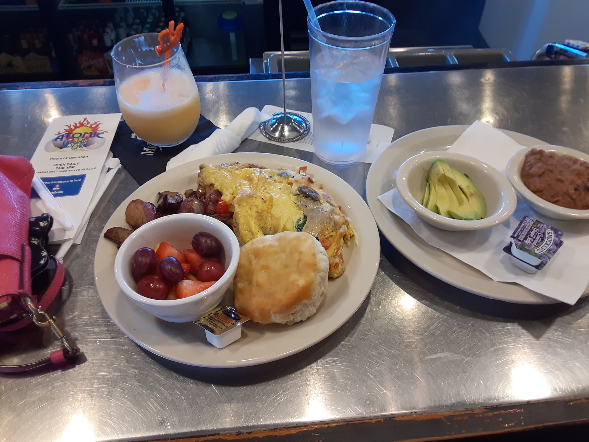 Food is overall really good and better enough to reroute to as a breakfast destination if considering your national chains. I ordered the tamale omelette because it was the first thing I saw on the menu and I didn't come prepared already by browsing the menu. I really like the order and pay before you sit down model of sit down restaurants like this one. After having a child I find it more convenient either if someone is watching him and I have to quickly go, or he's with me and have to quickly go. Which actually happened during this visit. Toddlers aren't the best bargainers so the only way I could manage to go to a restroom without an unwarranted screaming fit, I bribed him with looking at Halloween decorations as I hurriedly left. I digress, but the point is, I much prefer paying ahead of time. Most other places like this don't have people waiting on you, but they do here. Judging by the tip bucket up front and the fact that two people came to check on me, I'm going to make an educated guess that they use a tip pool system. Everyone was very nice. I ate enough to be uncomfortably full, and I had given my biscuit to my son so he could make a sausage biscuit on his plate. He got the pancake plate, and after his fruit and sausage biscuit that was enough for him. So we ended up going home with two definitely oversized for children, pancakes. Though it was delicious, the tamale inside my omelette wasn't thoroughly warmed inside to make it completely soft. This was a very minor thing. Though I personally prefer salsa on breakfast items, just an FYI if you like hot sauce, they only have salsa. There was one thing I didn't like here and it's something I've been noticing as a trend in Corpus establishments that I do not care for. They are closed on Wednesdays. Not sure how that came about, usually places are closed on Mondays if they feel the need to be closed on a random day. I learned the Monday thing very dramatically almost traumatically. I went here on a Monday and it was very clearly, slow. The type of work I'm in requires me to work the majority of the weekends in the year so I typically have Tuesday and Wednesdays off because most places tend to be open during the middle of the week. It's only that I happened to be working afternoon/evening shifts this week that I happened to be able to grab breakfast but that's not typical. This is a personal vendetta, I wouldn't hold it against the business...I will be back. Just not...
