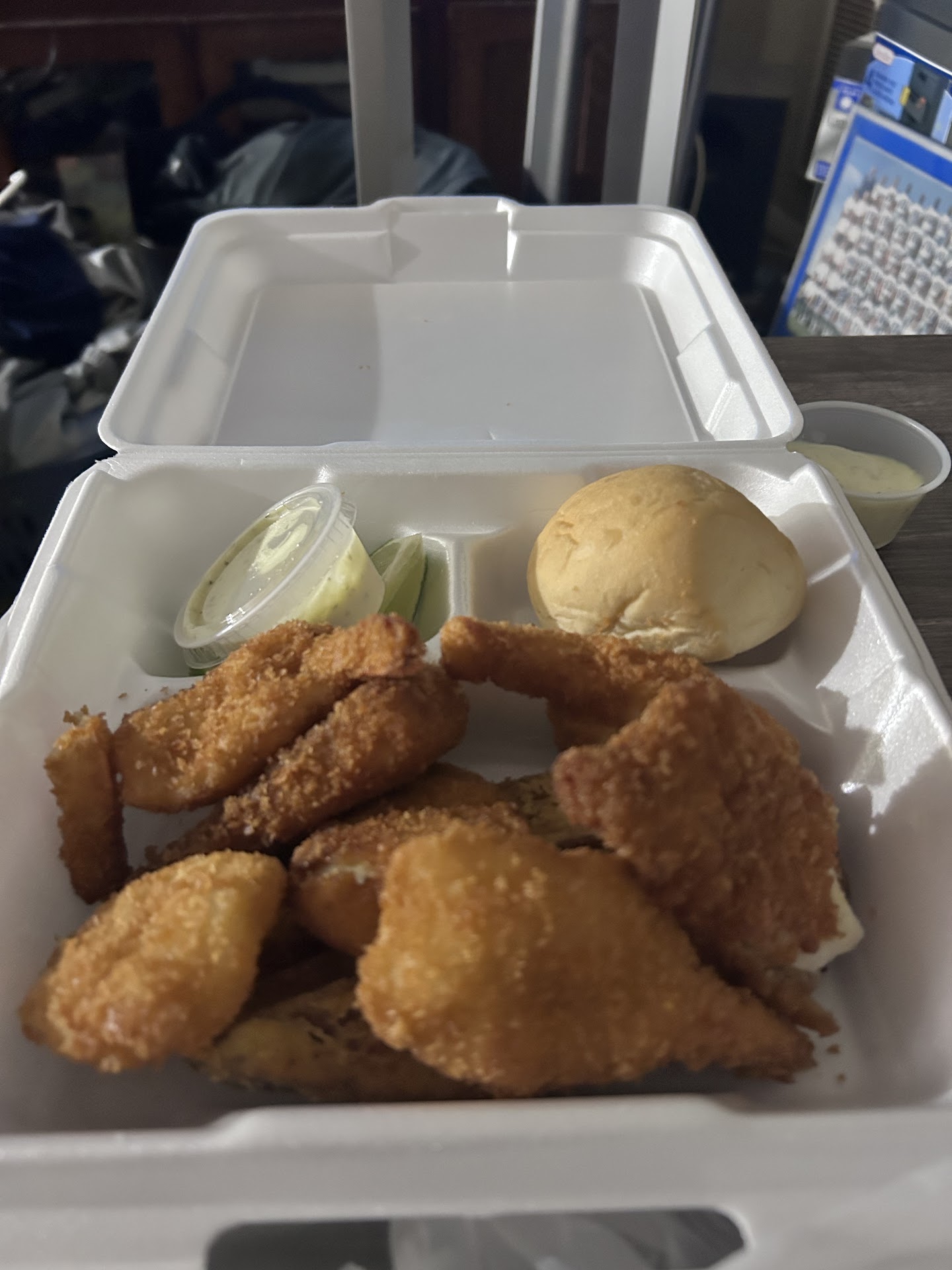 Read moreWe ordered the fried fish, fried shrimp, and fried oysters. We went through the drive-thru, and everything we ordered was made fresh. The potato wedges were interesting nothing really special there and the same thing could be said about the rolls, but the fried foods that they had were absolutely amazing. The fish was juicy and the outside was crunchy and the oil that they use seem to be of a good quality. The flavors and the seasoning that they used was really nice and was a great compliment. They're tartar sauce was actually good too, made in house. I'll definitely be going back here, and I would recommend this place to anyone that has a craving...