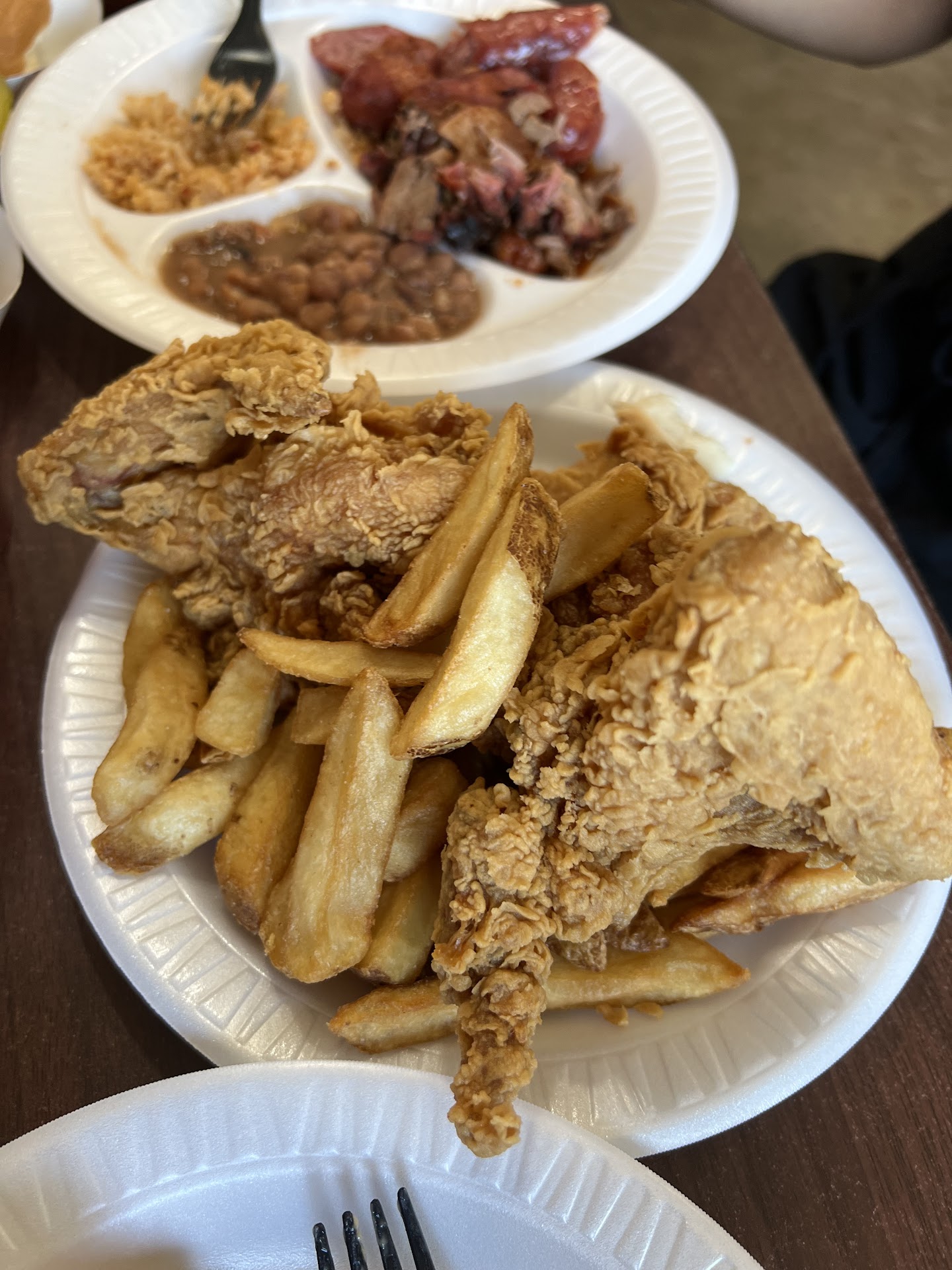 Worth the read! Small portions, horrible sauce, not bbq but more steamed meat with liquid smoke. I will not ever eat here. I tried today but what I got was not BBQ. When I received my plate all the meat was smothered in a broken watery tomato liquid like sauce that is supposed to be bbq sauce. Texture of sauce was wrong, color was wrong, flavor was wrong, consistency way off. I was going to just pull the meat out after fishing it out of what looked more like a soup than a sauce. Brisket 2 pieces, 4-5 small pieces of sausage that looked torn apart not cut. Brisket had zero smoke ring, had zero bark tried very small piece and it was not enjoyable. It appeared to be steamed and not smoked. I took plate back and told employee that I was disappointed in the plate and didn’t expect it to be drenched in sauce. To which she replied “we put bbq sauce on our bbq” I told her “if you had real bbq you only compliment the meat with the sauce not mask the meat flavor”. Was going to have them re-plate it but decided just to get refund and leave. It could have been my perception but the employee had a tone about my displeasure. It seemed part passive aggressive, snooty, with pinch of disdain. Like she took it personal that I know food and since I didn’t want theirs it was a personal insult. That could also just be my perception. All of that said. In my opinion, not real bbq, horrible sauce, low value $18 for 2 undersized meat portions. Didn’t try anything else since...