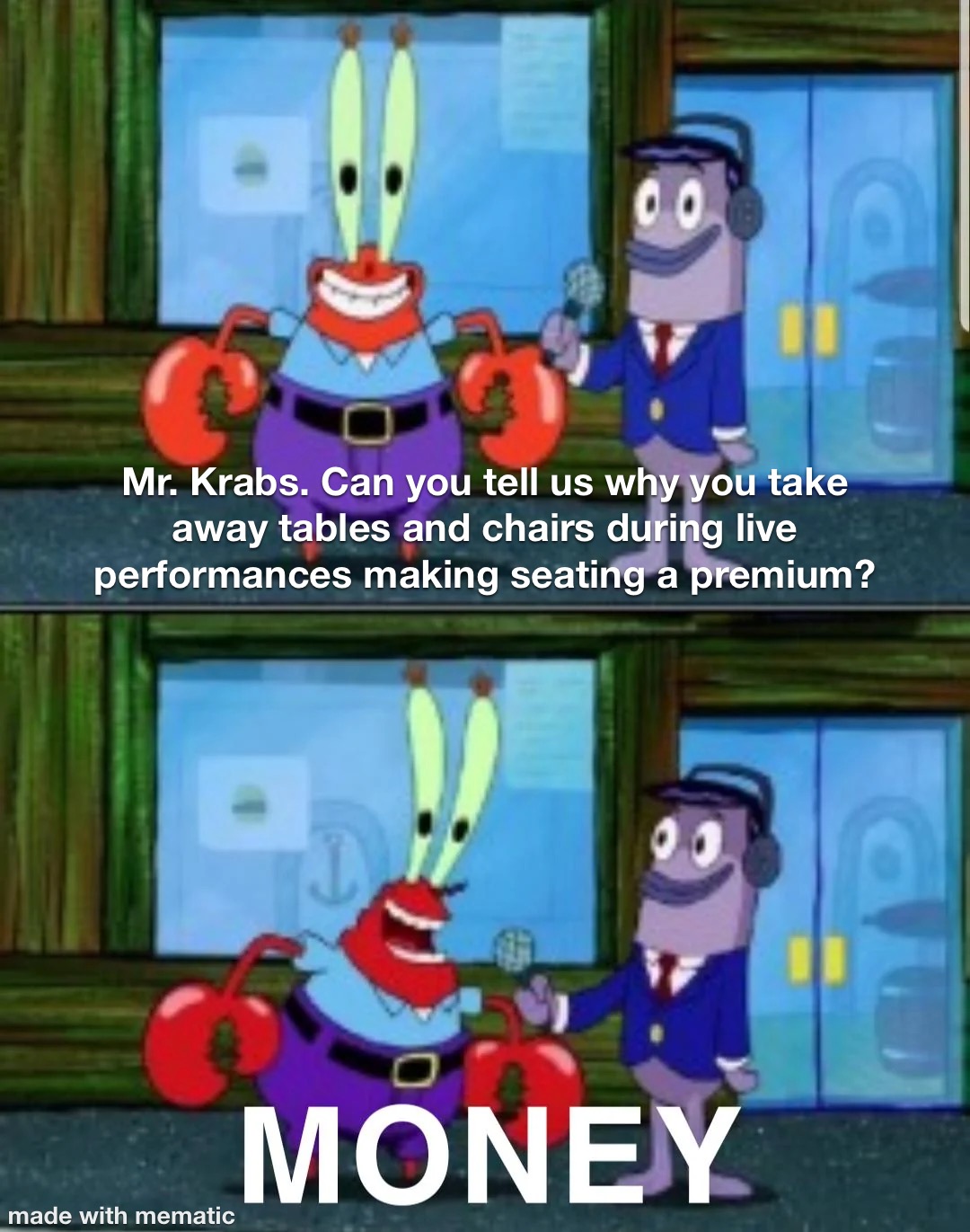 While an up-charge to secure a table especially one with a premium view of the stage makes a lot of sense, the route you decided to go with is one where you display your lack of humanity.