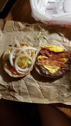 Read moreI hate giving bad reviews but this location honestly isn't a very good pick. I went through the drive through during dinner time (an expected busy time). It wasn't busy at all! I ordered the number #6. This looks absolutely nothing like the #6. Like at all! It's almost false advertisement to me. The patty is super thin. It was honestly a mess. I had to do some reconstruction of my burger. There was only 1 pickle. It didn't come with ketchup. Which isn't a huge deal but it's just the simple fact that the window man said it would come on the burger along with mayo. I'm very disappointed on the bacon. On the menu it looks good but this is what you get. It's not even worth the price. It was also Luke warm so by the time I got home (5 minutes away) it was cold. Anyways, I'm giving two stars.. 1 for the getting the order correct. And 1 for nice window service. This location really needs to step it up! I will be going the extra mile to use another location. This was just...