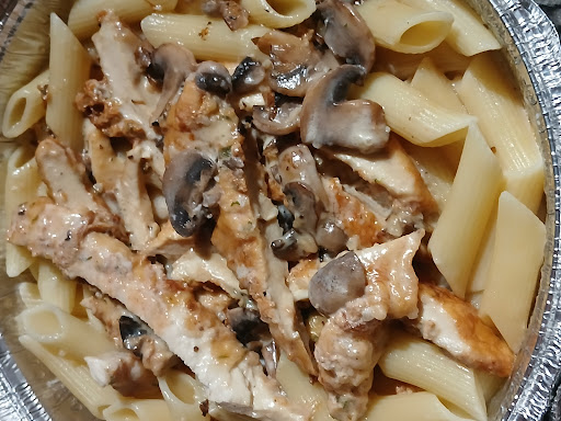 Ordered: 2 Chicken Forest (pd for ex sauce) 1 Chicken Alfredo (pd for ex sauce) 1 sm Ziti Bolognese 1 18" 1/2 cheese 1/ pepp 1 Baked Meatballs 6 Rolls 1...