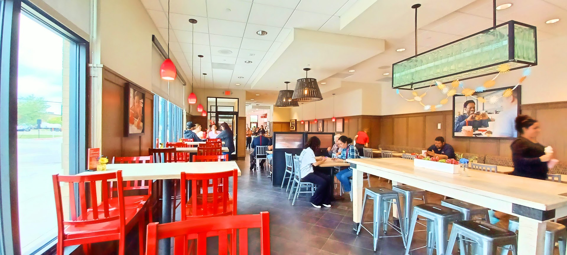 Read moreDisabled were not able to park because the regular drive through line was blocking entry. No thought put into disabled parking spaces. Was told an "extra 10 minute wait" for an egg white chicken breakfast sandwich. Have never been told this before and did not have the extra 10 min - Dr's appointment. Ordered the "new" super tiny classic chick filet sandwich. They are super small and lacking the flavor they once had. Biscuit crumbled everywhere. Finally, after not getting disabled parking ...We hobbled a good ways to the door and Jasmine told us there was no where to sit. They had just received 2 busloads of kids sitting indoors. Our sandwiches took a long time so during that time, a patron left and we managed to get a table. We are elderly and were glad to finally get one. The food was terrible and the parking is not right. It was extremely noisy with 2 busloads of kids in there. Photos below of disabled parking blocked.