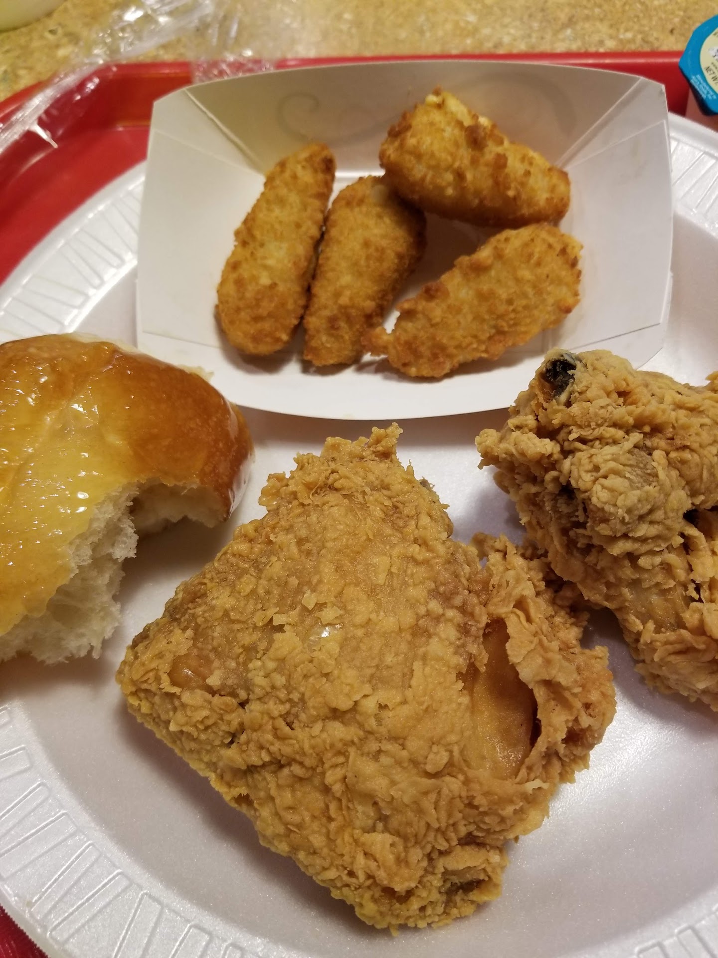 Read moreWent to the drive-thru to pick up dinner. I ordered two 2pc fish w/ fried okra & mashed potatoes. Also ordered one 2pc chicken w/fried okra & mashed potatoes and spent $34. They had me pull up to wait for my order. No problem because you want your food cooked fresh and to be hot.