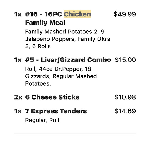 Ā Ā Ā Read more3/31/2025 The girl taking the orders at drive thru was very Sharp today, seemingly aggravated at the thought of having to take someoneās order. My mom and I have worked as store managers in the restaurant industry for a combined total of 70?years worth of experience between the both of us. Thereās no way I would ever allow a person to deal with the public with such a disrespectful attitude in one of my stores. It was beyond me why she could not hear us through the speaker. She heard us perfectly fine she was just being condescending and difficult for no reason. She couldnāt have been more than 19 or 20 but thatās not an excuse for poor etiquette. Chicken express has a great product but definitely thumbs down to drive thru customer service. I am retired and I am a paid food critic / reviewer. I was not going to review them today because I was at drive thru and because I was simply on the way back from the doctor and my son said ā mommy Iām hungryā so it was a lil family trip it definitely was not supposed to be business. I will say that the manager was attentive and on top of things once my mother and I both asked to speak to management. . Cusps to the Store managerās customer service skills. But thumbs down to the employees DO BETTER CHICKEN...