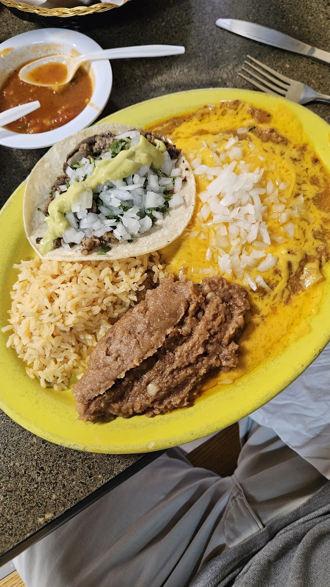 Read moreNot very busy when we walked in that should have been a sign. I'll start with my al pastor plate the rice was very dry and bland, the beans were crunchy the way that uncooked beans come out of a blender. They were very dark with a burnt flavor. The al pastor was hard with burnt pieces. The flour tortillas were rubbery like they were cooked in the morning half way and then heated to order one was even a little raw. My spouse ordered the burrito with carne guisada ,the sauce looked like alpo . The sourcream had a hair. Over all I will not be going back . The lady said no one return our food . I am sorry to hear that the people who live there do not expect decent food in exchange for their hard...