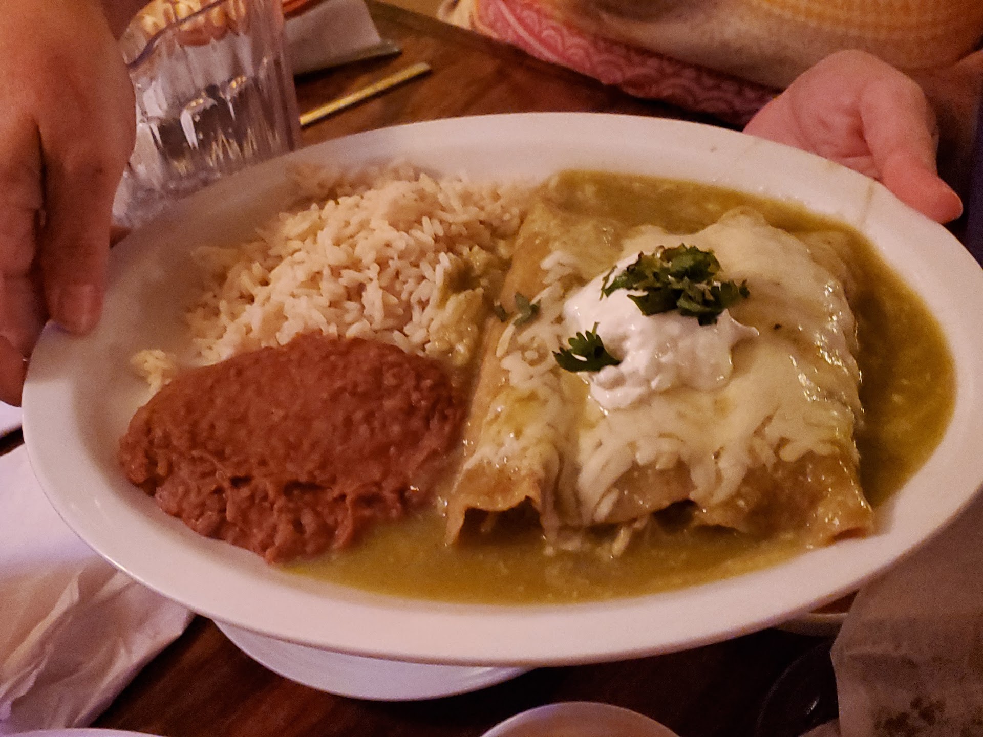 Read moreSanta Vaca! This was fun and tasty! Due to road construction didn't know if we'd get into the parking lot. So glad we did. Fun family atmosphere. Seriously authentic. It was in North Padre Island so expected but still. Very busy. Didn't think we'd get a space but a family moved to a smaller table for us so we could be seated right away. That speaks to the coolness of the clientele. The chips were a little small serving but we got a second batch. The salsa was spicy not the standard red stuff you get where I'm from. Green salsa. Good tasting. Wife asks "can we get cactus salad?" Never ate cactus before. To me tasted like spicy green beans. Had tomato onions and bits of cheese. Cool. Also came with corn tortillas. Wow those beat out the ones ive seen at stores or Mexican at home. I usually avoid those and go for flour but these were good. Man (in picture) and wife own this. Only been running for 16 months. Another similar spot they own in San Antonio. Thats been going for over 25 years. Fernando Rosas is owner. Now to the food... the owner heard I liked a little spice and suggested Asada de Puerco. Oh my... that was totally amazing. Not a bit left on the plate. It was a rich spicy pepper sauce. Nice spice... Two people got Enfrijoladas. They were a little spice challenged. Loved it but a little too hot for them. We all tasted everybody's. I was ok with it. Owner said if it gets too hot, time for cervrza. Mole poblanos is favorite dish in Mexico according to the owner. Kid1 got chicken enmoladas. He loved his. Think everything is gluten free. There's vegetarian options too.