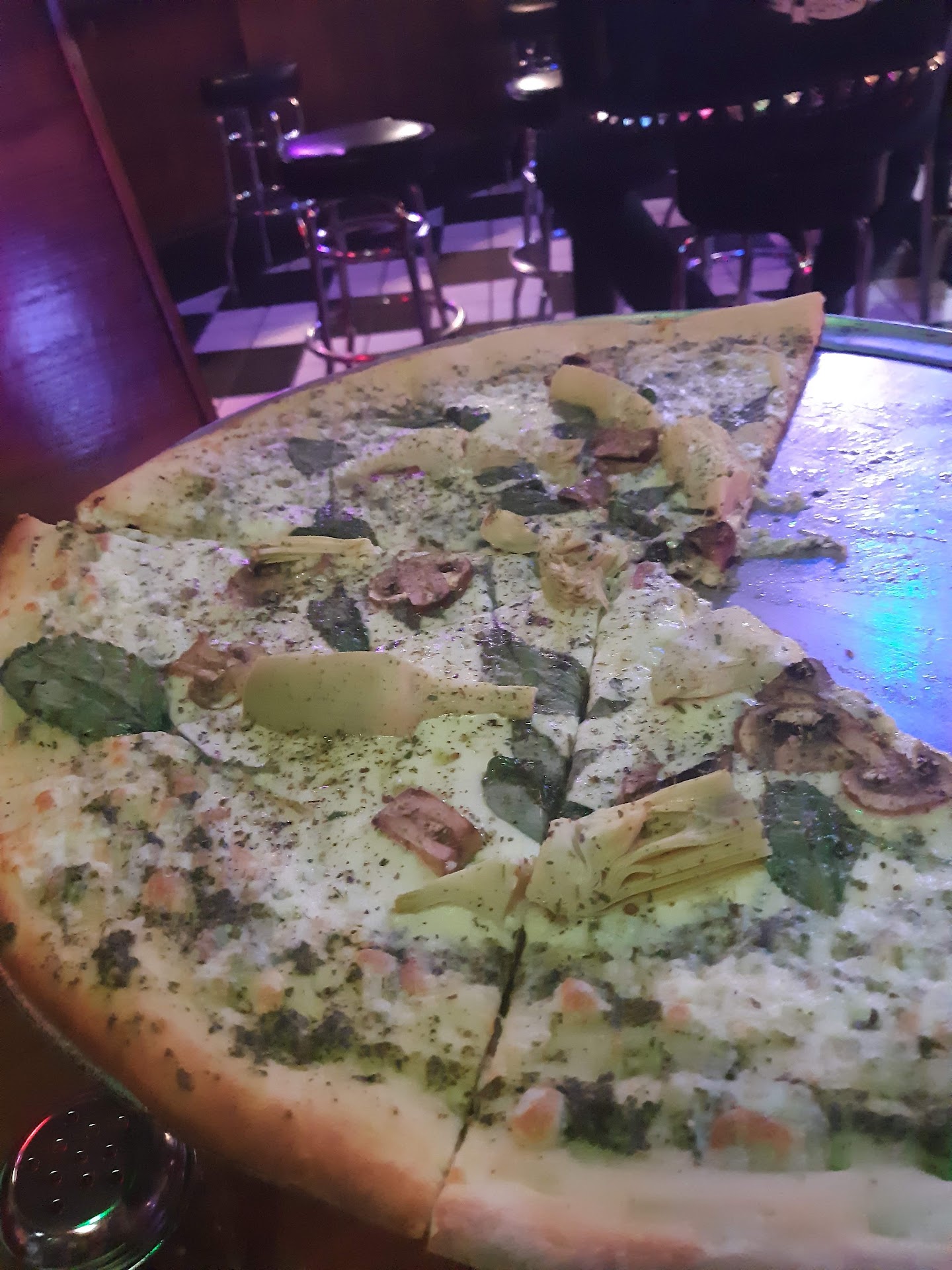 A bit confusing for a first-timer. I came for open-mic night and was expecting a single room with seating and a stage/performance area, but that wasn’t the case. I walked in the front door and there wasn’t any host and I wasn’t greeted until I looked lost trying to find a menu. The person greeting was at the bar across the room, so I go and order at the bar. I got sweet tea and it wasn’t great. It looks like they have a gallon of unsweet that they pour into a cup they fill with syrup or something from the bar on tap. There’s not enough sweetener to sweeten the drink. Waited for about 15 minutes for my pizza to come out, which is expected. Came out nice and hot, but they called on a speaker that there was an order for my name at the window. The speaker was too loud for the empty room, but I figured the volume is set for when it’s fuller on the weekend. There wasn’t anyone going to get it so I go to the window and pick it up. The guy looked a little confused/surprised, but told me how to carry the pizza tray. I wasn’t given a plate or any napkins until halfway through the pizza. It was nice and hot, but with the thin crust it had, the center of the dough wasn’t done enough so it didn’t come out quite crispy or soft, but in-between, kind of like stale crust, but it was fresh. I also had to go up to the bar for a refill of my tea. I wasn’t sure if that’s how I was supposed to do it or not or if I had to pay for a refill. I had wanted to sit, eat, and enjoy the show, but I had no idea if there was seating to eat in the “venue” side or not, so I finished my food before going over to that side.