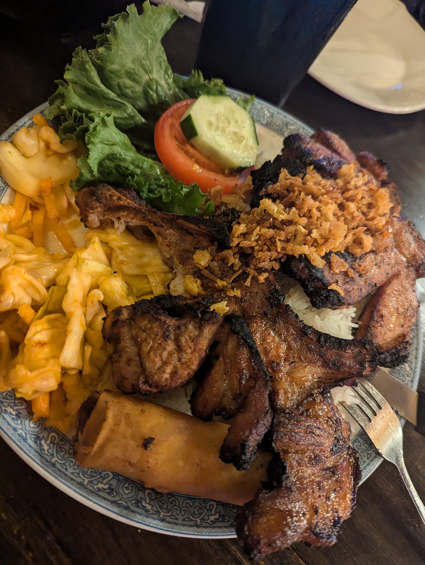I had my usual combo bun with beef, a great mix of textures, flavors, and even temperatures. The egg rolls being my favorite part. My friend got the lo mein with chicken, could smell the smokiness of the noodles as the plate landed. Chicken was tender and veggies weren't over cooked. Great flavor, can see why it's a best seller.