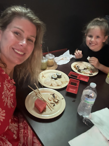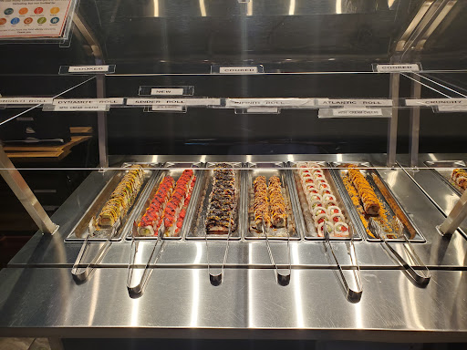Read moreThe place was super dark and quiet, which felt a little weird for the time of day we went, but the food was really good. We never were brought our ginger and wasabi, but I'll give grace here since the actual food was good. Self-service single serve drinks are in a fridge, and then about 15 choices of sushi rolls and nigiri. There was also a calamari salad abs a seaweed salad and a few fruit choices. Mostly the popular rolls you know, like California, but a couple of special ones like Corpus Christi. The rolls are big and fresh, and everything comes out to an even $18 each with drink and tax. There are some other menu items that are extra, like kids menu items, lumpia and noodles too. We tried the lumpia and they were the best I've had. The order was too much for the 2 of us so it's a large order.