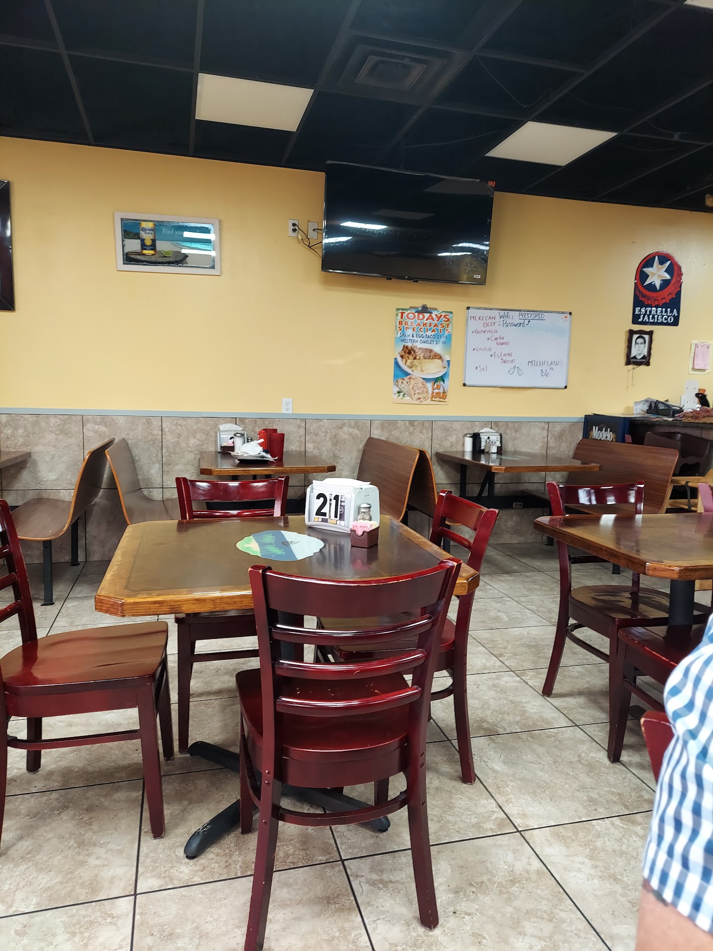 UPDATE 08/05/23 Finally got the opportunity to try something other than breakfast food, and I was not disappointed. I got the Texas plate(2 cheese enchiladas, carne guisada, rice and beans). The food was hot, fresh and tasty! The carne guisada was very tender, and had great flavor as well. Still have to throw out a warning for the salsa, it's HOT. The table salsa served with the chips was plenty hot, but then our waitress brought over 2 squeeze bottles with other salsas, one red and the other green. The red was like 2 steps hotter than the table salsa, and the green was straight up ridiculous! Great overall experience; good food, and a very friendly wait staff. We'll...