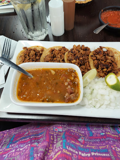 Read moreWe have been here before , but we did not remember it. Well, there was a reason. We must have written it off to not return. I ordered a taco salad with ground beef , easy, right? Well , I mixed it up, and before I finished , it was a soupy MESS , I did not add salad dressing or hot sauce. I think the lettuce was WET to start , then add beans , sour cream , meat, the waitress said when I showed her and said it was like soup , way too much liquid, which I pointed out, told me it was the liquid from the ground beef??? OH, you mean the grease that was not drained.? Whatever it was, I sent it back. I did order the pastor tacos with Charo beans , no cilantro, just meat and onion. Here are the good things: the pastor was good if a little greasy ( even for pastor) , and you got 4 little tacos with only 2 tortillas each. Most places give you 5 ( too many for lunch), and most have way too many little tortillas. Now, for the bad ; I have never had street tacos with just chopped up white onion , it is usually grilled a little. I also did not care for the Charro beans , more liquid than beans, and not a lot of flavor, corn tortillas there are tough.Chips just ok , salsa good. After I sent back the taco salad , I did not see our server again , even my street tacos were brought out by the manager. I was out of water, and he did pour me a full glass , but it was not cold, and I had no ice. E for effort ,I guess. So, in conclusion , there are just too many mexican restaurants in town to go back to one that had too much wrong. I did enjoy...