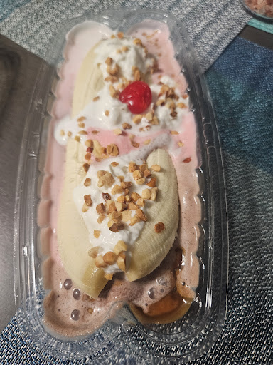By the time we got it, the banana split was completely melted. You'd think that with the driver's patience that they could manage to at least keep it cold. But it wasn't even made as described. There was no hot fudge, which was amazing considering how melted it was. The fact that you could even order things they were out of is just stupid. But the only things they managed to actually have were only vanilla, chocolate, and strawberry ice cream?