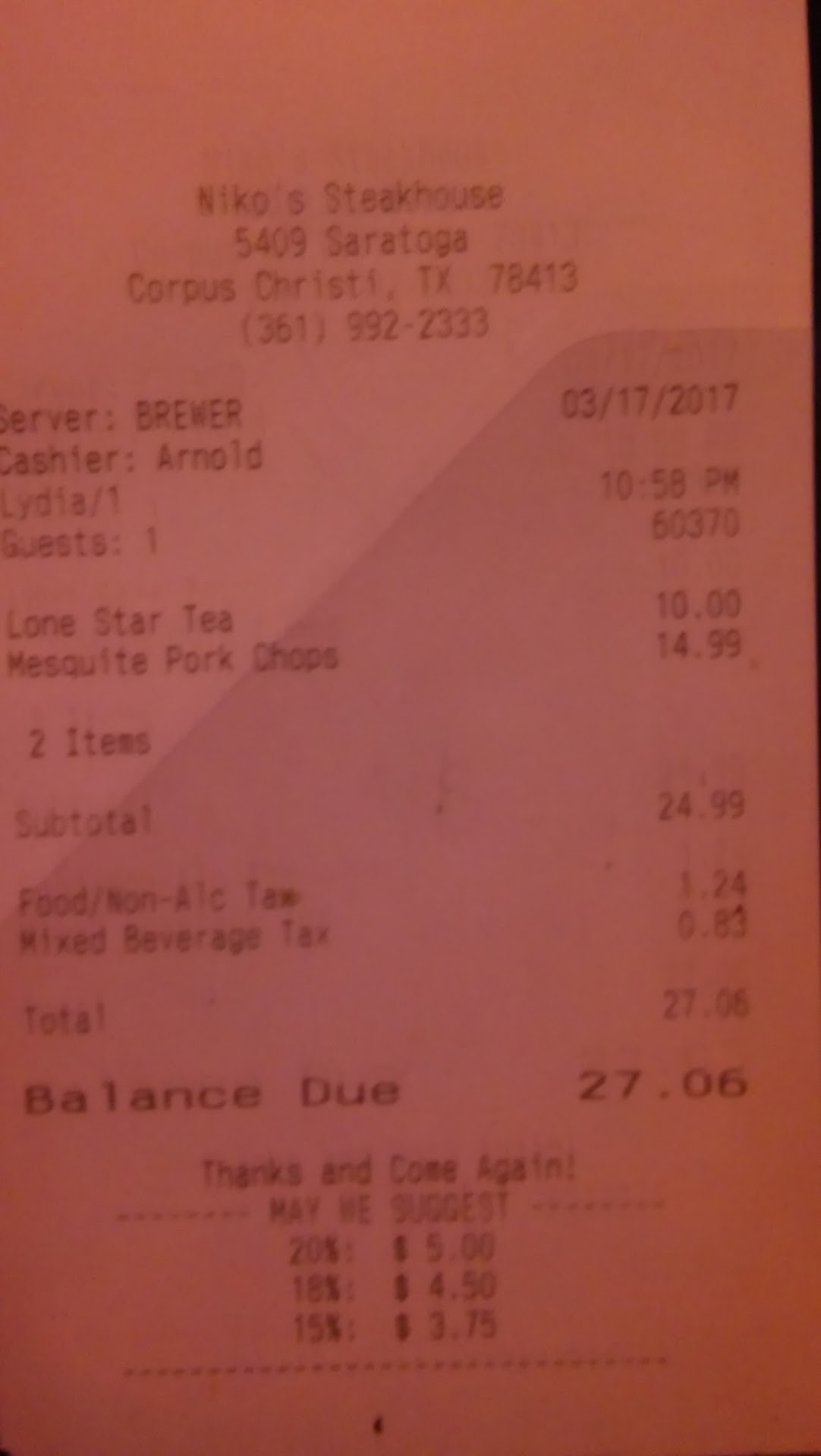 I have been to Niko's many times. I have to say that before 2020 this was a restaurant that did not disappoint. However, since covid they have gone down hill & every time I try to give them a chance they fail me. I went there back at the beginning of Dec to celebrate my son's going away. When our server first greeted us he seemed confused as to how to swap out vodka for tequila. That is understandable. However, after our party of 6 had been waiting for 40 min to order our food, another server came to assist us. She ended up helping us and making sure to check on us regularly. The food came out and the bake stuffed shrimp included the shrimp being luke warm and overcooked as if it had sat out for a while. Today, despite that last visit, I decided to give it another shot. Again food came out luke warm as if it was sitting for a while. We ordered 3 Bellini martinis but with tequila instead of vodka, like we did last time. I understand that some servers may not be knowledgeable when it comes to liquor and how to charge. However, we were charged specifically for Don Julio which is not the well that should have been charged. When we brought this up to the server he told us the bartender told him to ring this up and that after meeting with the Manager, Douglas, that he also agreed that this charge was correct. When our server tried to call the manager over who was on his way to the restroom, the manager waived his hand up as to say he didn't have time for us. We waited, then Douglas came over to apologize but then blamed the server who he said told him we asked specifically for Don Julio. I have served and bartended in Corpus for multiple restaurants and bars and know this is incorrect. When a customer asks for a a swap out of liquors, the assumption is to charge well not a premium unless the customer specifies this. We were charged $40 more on our ticket which also included a birthday charge. Now I understand the birthday charge. However, $4 for a cup of ice cream is ridiculous. Douglas corrected the charge after he saw we were not going to just walk out without saying anything. We are unsure if the server, bartender, or the manager lied. However, the whole evening celebrating my mother-in law's birthday was ruined by this. Niko needs to educate their servers and also teach their managers that customers come first. At first we felt Douglas was trying to ignore our complaint. Although he corrected it, this should not have been such a big issue. The server not apologizing after or saying a word to us after also made us feel maybe we were wrong to defend him as he may have just been the one who lied. Either way, this was the last time we will give this place a chance. The amount they charge is not worth it especially if the food sits out. Another thing, we were annoyed by gnats at our booth which was not near the bar....