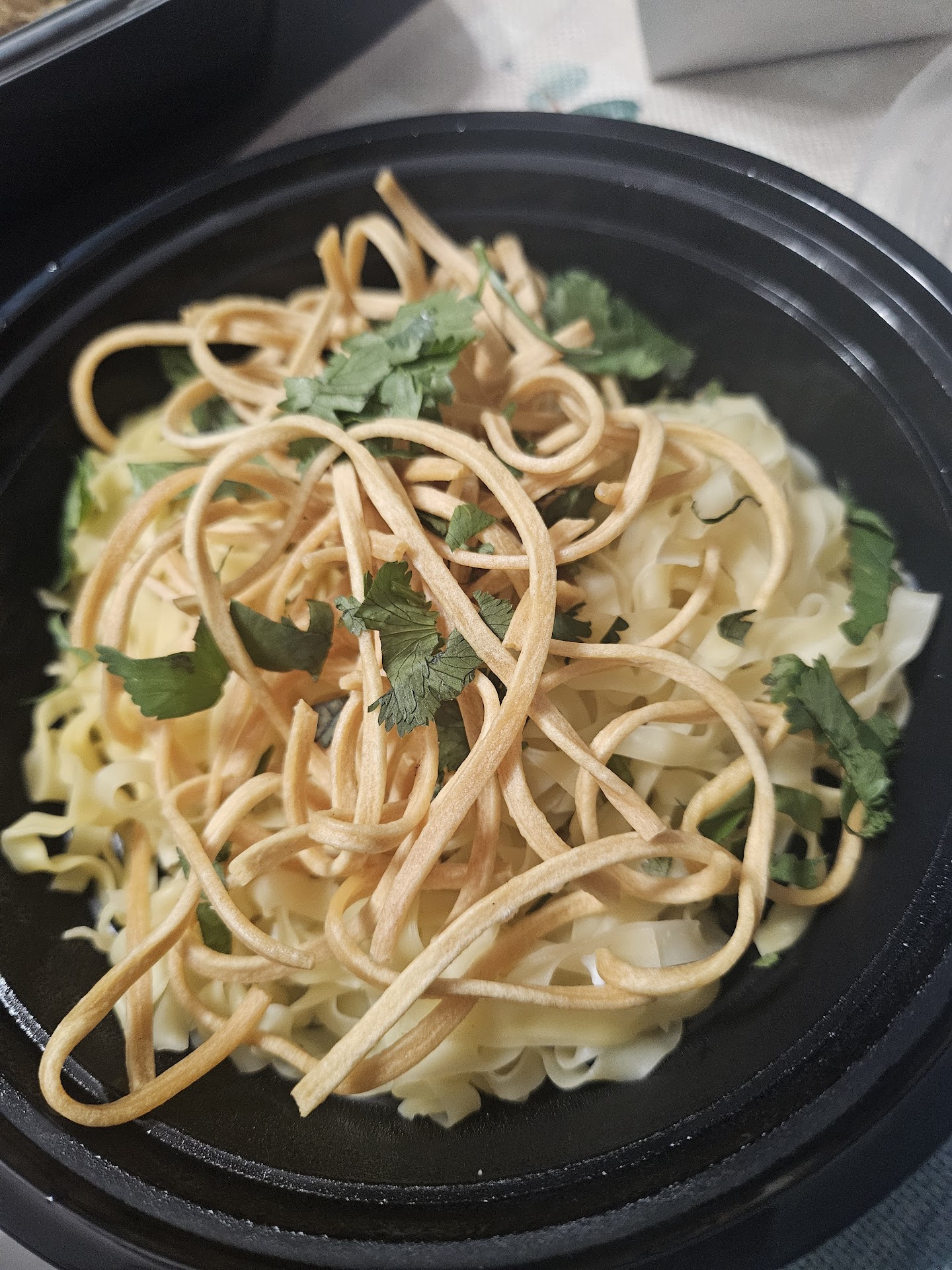 First off, they omitted the beef that they charged extra for. Second, it was literally just sticky pasta, topped with dry pasta. Everything else was in a different container, which we figured out pretty quickly that it had to go on that pile of bland substance. After adding the "sauce" it was still almost impossible to eat, as it was all stuck together. The "sauce" was spicy but had absolutely no flavor at all. The entire dish was just inedible. There was nothing creamy about any of it, which was in the description.
