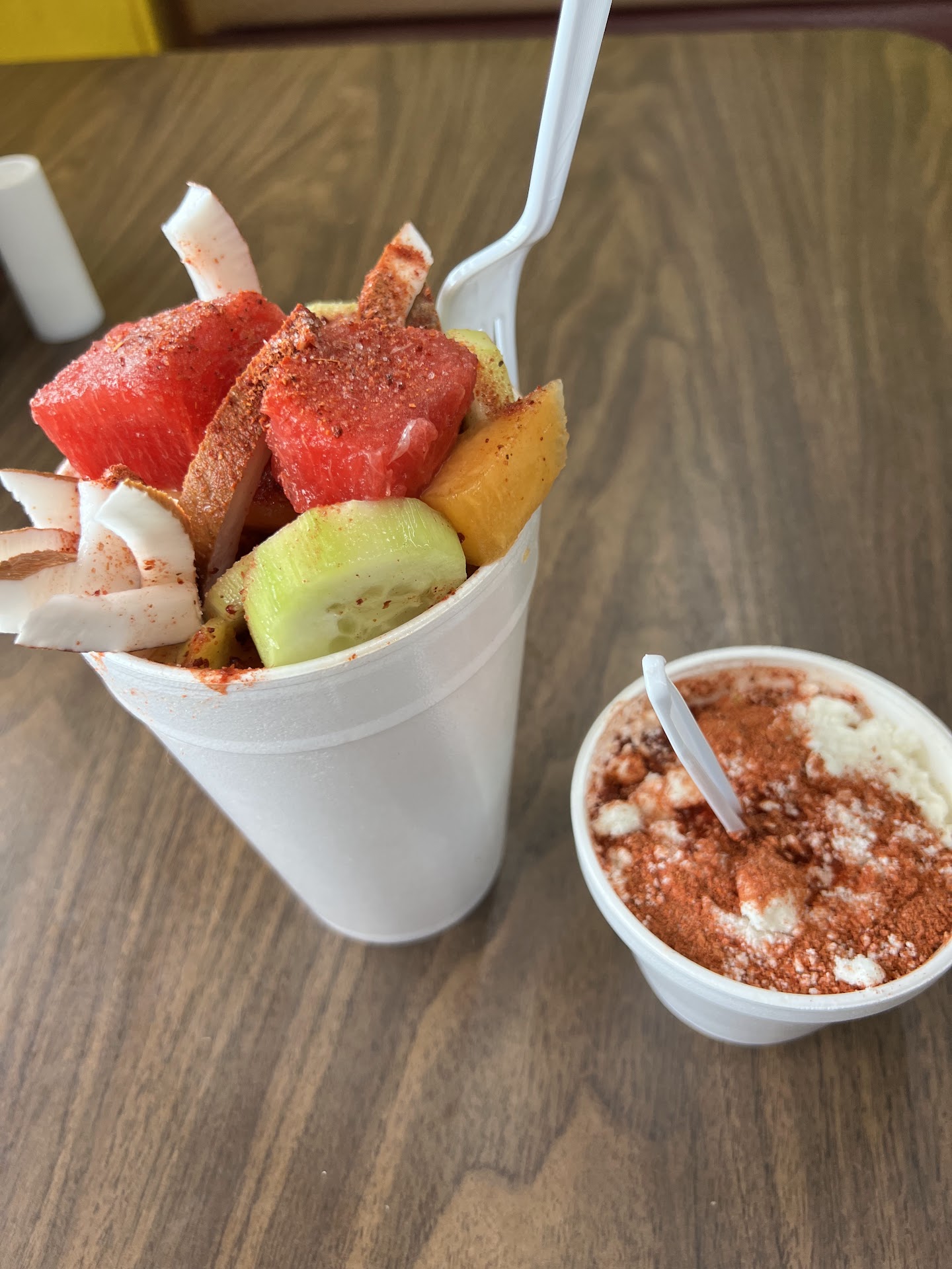 Read moreStart with the positive: fish & shrimp tacos were delicious, avocado was fresh. The fruit cup was good but the chili sprinkled on top was too vinegary & gave the fresh fruit a bitter taste. It was also overdone with the Chile, but the fruit was fresh & good. The bad: corn in the cup was not good. Clearly used yellow canned corn & old grated cheese. The lemon pepper was a bit too much & the flavor clashed with the Chile powder. Not a Mexican style corn in the cup. The store felt dirty & messy. The counter to pay was full of junk. The beverage fridge was dirty & disorganized. The lady in front was nice, they did provide friendly customer service. This place has potential to improve. But at least the...