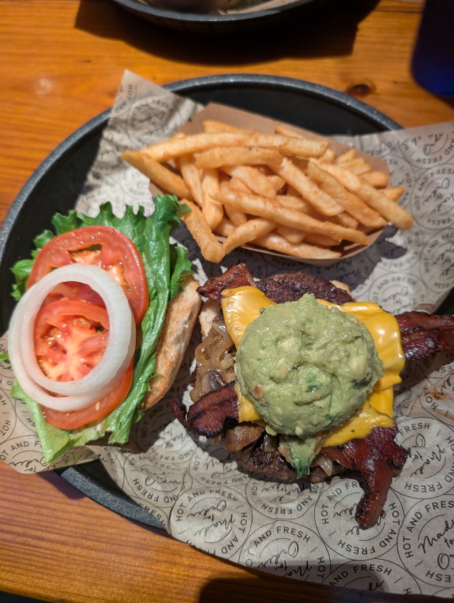 Atmosphere is what you would expect for a beach burger joint. Mainly outside seating, a few inside tables and bar stools. You have to wait outside in line to order at the door. You get a buzzer and pick up the food when ready. No wait staff. All of this is fine for the location, not a problem. We went at about 7 on a Friday night. Not particularly busy, only one group ordering in front of us. We are a family of six, big but agian this is a weekend/beach vacation spot for families. Most groups are our size so not out of the norm. We ordered 3 adult burgers(all how the menu states no specials or subs), 2 plain children's burgers and one child's nuggets and all waters. Our bill was a $100 and change. A little high but agian we are in a vacation spot, so not unexpected. What was unexpected was the 45 + minute wait for our food. This place only sells burgers, fries and nuggets, so not hard. We were missing 1 burger on the first round and one was wrong and cold. Took it back and the girl argued repeatedly with me about what was actually on the burger. The asked "what do you want me to do about it". We said "remake it correctly". She looked the plate and passed to kitchen yelling very rudly "remake this because he says it doesn't look right". Then when those 2 burgers finally came, they were wrong agian. And by wrong i mean not matching what the menu states. We just ate them anyway because it wasn't worth it. And there isn't an itemized receipt so no way to prove what we actually ordered. But agian we didn't change or sub anything and since when is it ok to rudely agree with a customer that isn't being rude to you. The burgers had no flavor except for the tiny amount of sauce on the bun. They were dry and nothing special. So in short the staff makes it not worth they...
