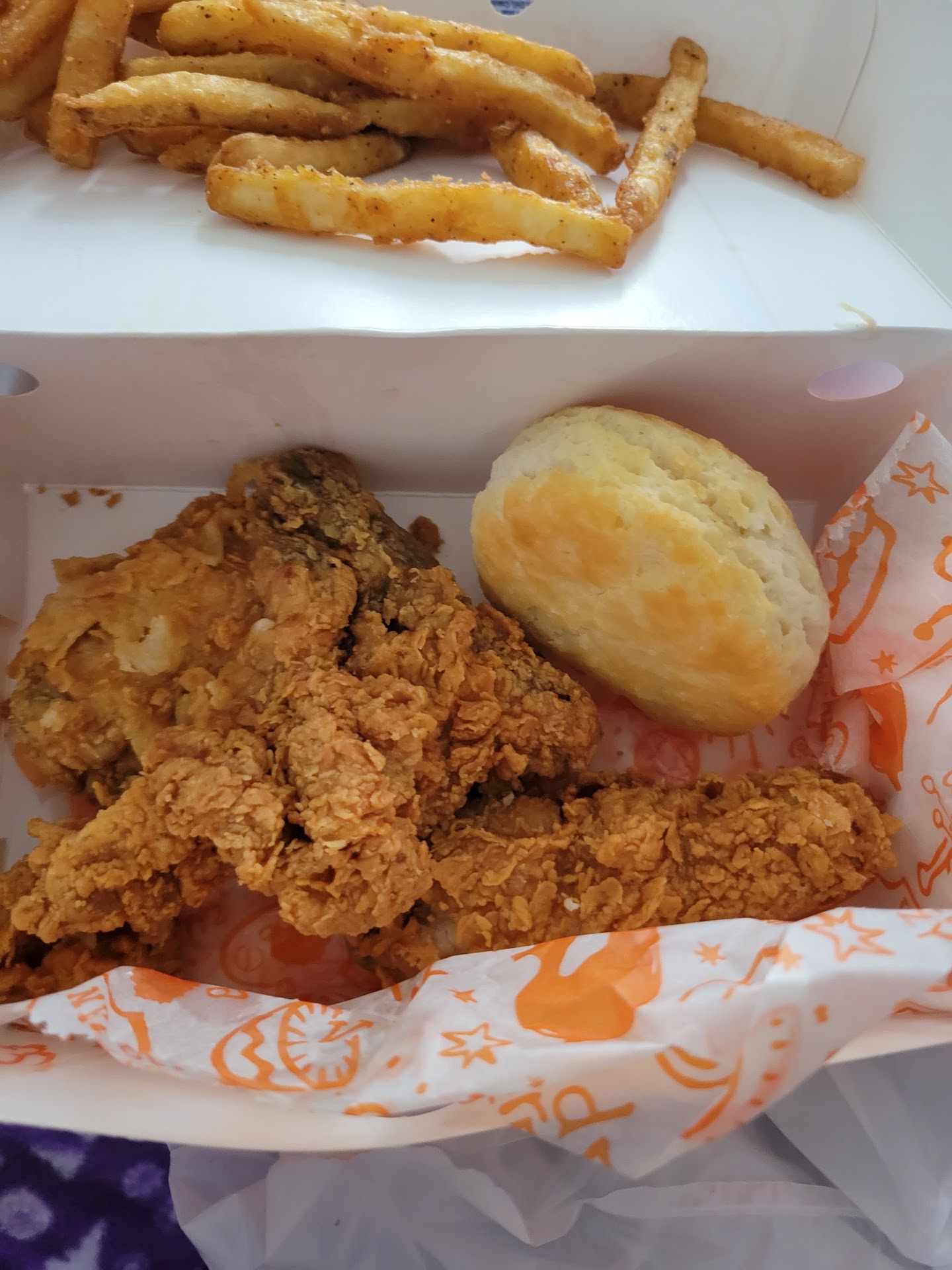 Read moreNEGATIVE stars here. I placed my order online at 7:00 pm. I arrived at 7:45 still didn't have my order ready. Parked me in the front of the building. Multiple employees came out to deliver food to other parked cars no one knew who had what order kept asking me what I ordered and if I had a paper receipt, many of the orders were 2-3 bags of food. But my family feast meal is still MIA after I sat parked patiently waiting for 30 minutes I went inside to see what the issue was. 2 other people were waiting inside for their order and had 2 boxes of chicken. (mine was 1 box and 4 sandwiches) More people were placing orders inside and getting there orders extremely fast. I finally was able to get the MGR's attention and ask what is taking so long she says I have to drop your apple pies. Excuse me you mean to tell me that I placed my order 1.5 hours ago then you park me for 30 mins I've been standing here for 15 minutes. I was given an extra apple pie and a gallon of tea for the inconvenience. Sadly this is the 2nd time we have ordered from there. The last time I used drive thru the wait was extremely long as well. The last time we will...