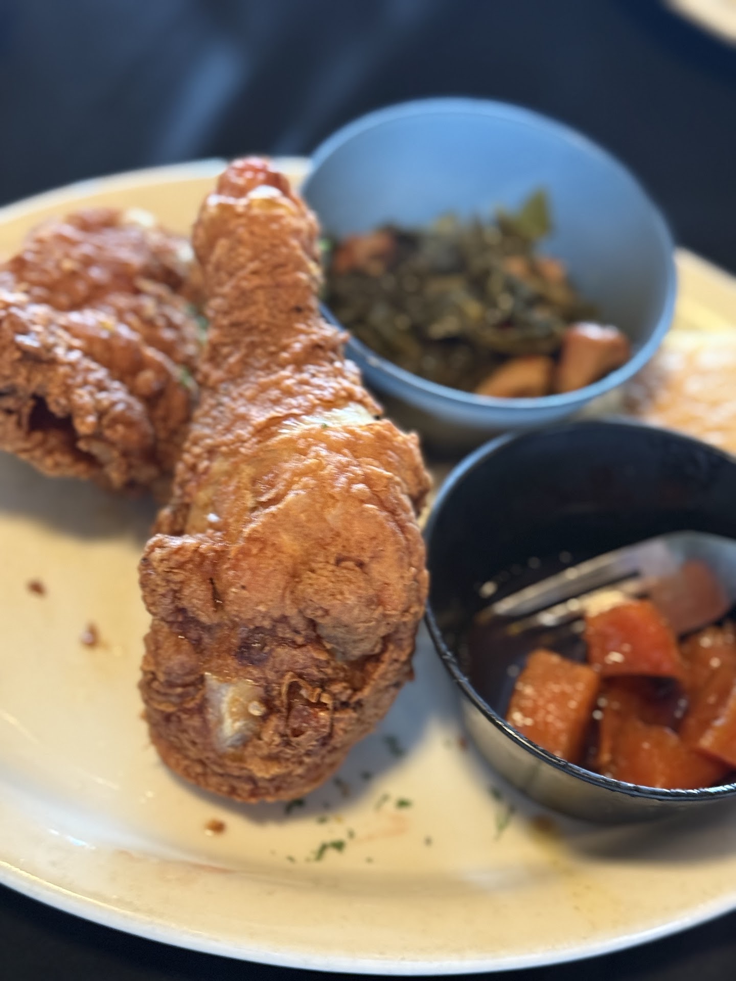 Now, onto the food. I had the fried pork chops, and let me tell you, they were sheer perfection! Golden brown and crispy on the outside, yet so juicy on the inside—I’m still dreaming about them. The sweet potatoes were hands down the best I've ever tasted, and the macaroni? Oh, it was creamy, rich, and absolutely indulgent. The only downside was that I couldn't eat another bite, though I definitely wanted more.