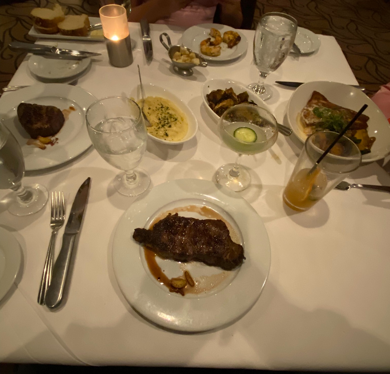 Overall, it was an amazing experience. Friendly staff, great tasting food. It was a little pricey, but you are paying for the experience too. My experience wasnt expensive because we didnt get steaks nor lobster; so I paid under $300 for 3 alcoholic drinks, 2 appetizers, 3 entrees, 2 desserts, and the tip.