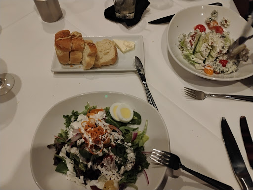 Read moreCanât say enough good things about our experience here, but Iâll try to convey the point. We made reservations and requested a window seating to view the bay, and upon arrival our table by the window with the bay view was ready. The hostess was so friendly and polite. She introduced our waiter and looked over the menu which can be overwhelming as all the options are phenomenal. I would recommend looking over the menu online before sitting down so youâre not flabbergasted trying to decide. We ordered the quail leg appetizer to start. While waiting we were brought some fresh baked in house bread , warm and pillow like interior, crusty, cheese coated and salty crust - this bread was fantastic. Waiter came back with our appetizer- the quail legs are fried and coated in a â sweet heat â sauce - tasted fantastic, skin was crispy, meat was tender and the sauce was a perfect mix of sweet, savory with the slightest kick of heat. For our entrees, my wife ordered the sautĂ©ed jumbo shrimp - large fresh shrimp with fresh fettuccine pasta, a rich buttery Alfredo like sauce, crumbled feta, shallot and capers. They really donât skimp on the shrimp and the shrimp taste and texture was extremely fresh. She loved it. I opted for the cast-iron seared Buffalo ribeye - medium rare - comes topped with a roasted garlic / marrow rosemary crust. Wow, fantastic - steak was cooked to perfection , melt in your mouth texture , meaty and fatty ( it is a ribeye after all ) , and the garlic marrow crust on top put the flavor over the top. Please note that the entrees do not come included with sides and that is an additional charge. For a side we ordered a half share of broccollini - which is essentially baby broccoli with longer stalks and smaller florets. It was seasoned and cooked well and came with some type of sauce which if I recall correctly was a buttery hollandaise and also tasted great. We had to finish with something sweet and went with the crĂšme brĂ»lĂ©e. Beautiful dish with a Texas shaped sugar cookie on top of the dish , homemade whipped topping with berries and the creme really hit the spot. This place is expensive , but the quality and service matched the price. A small duo band playing keyboard and drums added to the atmosphere. If you want to impress your date or colleagues, this place doesnât disappoint. Donât come here expecting to spend less than $100 for two to dine. The view is also fantastic, offering scenic views of the bay and the city. 10/10 , would recommend especially if staying...
