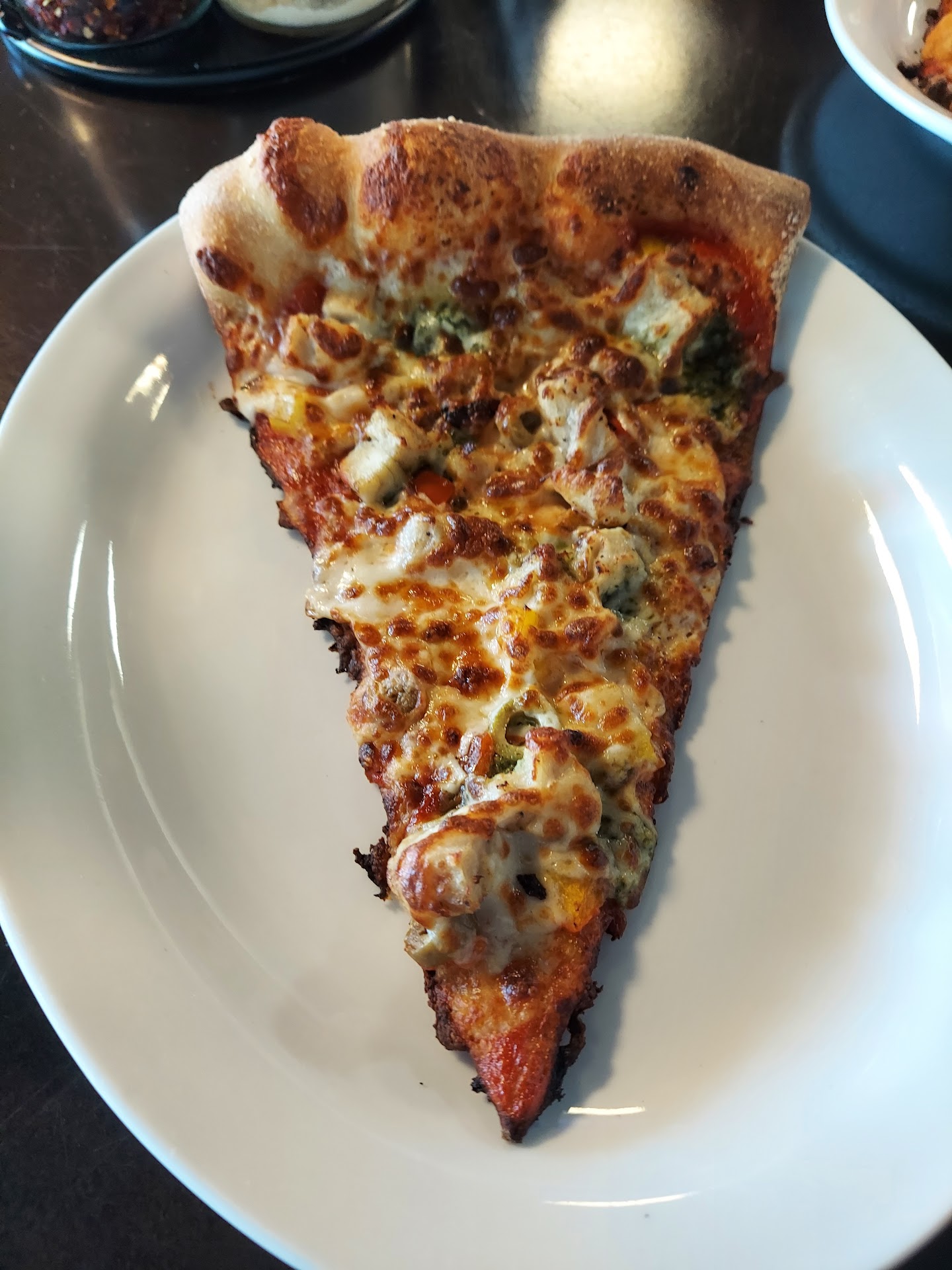 While not as sweet as some of the Western New York styles, it's undeniably the closest and best we've found here. The crust is just right, not too doughy, and as Dave Portnoy might say, there's minimal "flop" when you hold a slice out.