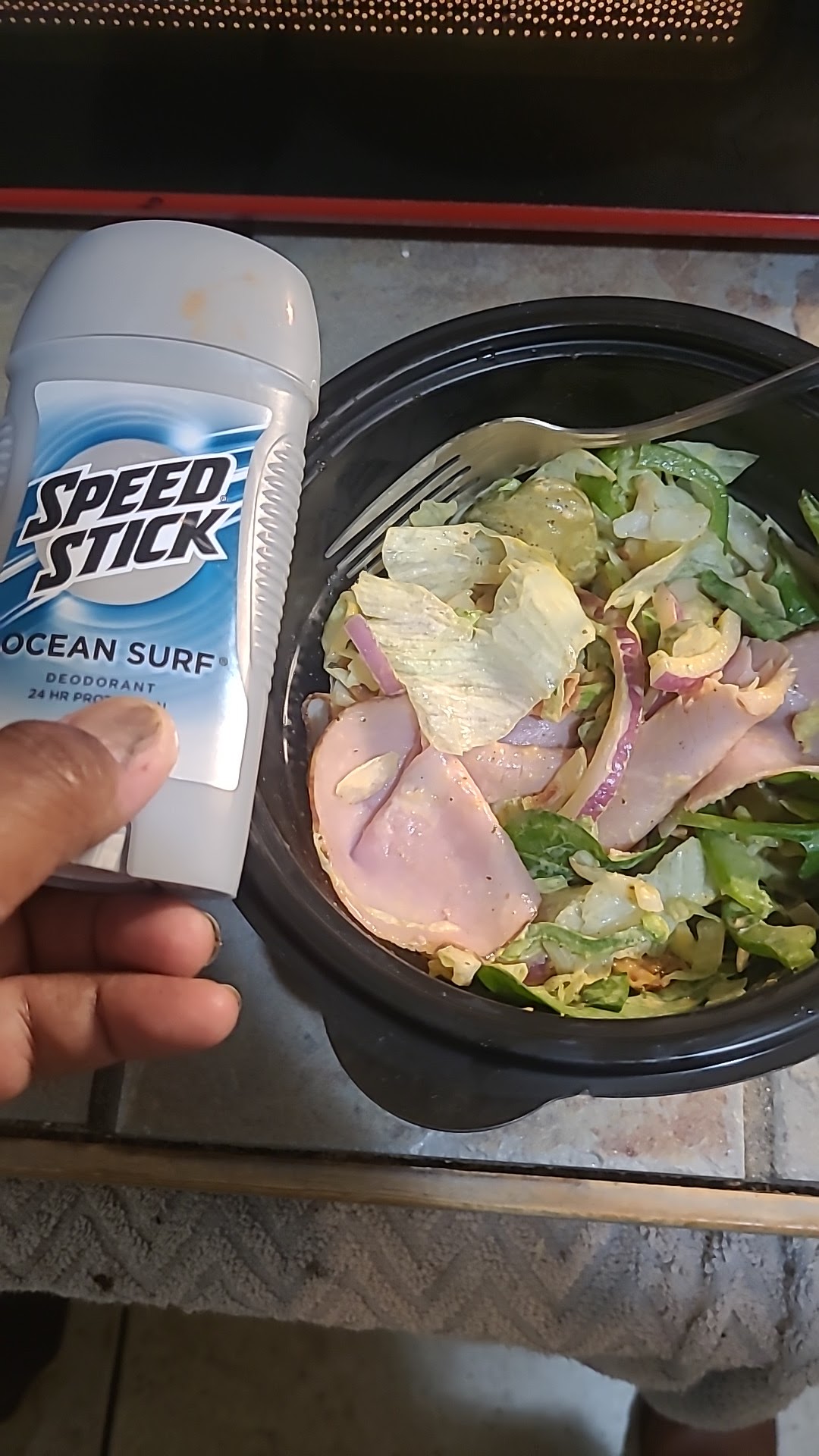 Read moreWow.... yall want to see what turkey, ham, pepper jack cheese, lettuce, spinach, pickles, green peppers, black olives, onions, Jalapeños, yellow mustard, baja Chipotle sauce, black pepper 3.00 EXTRA DOLLARS FOR BACON 🥓 LOOKS LIKE. Plus I gave them a 3.00 dollar tip, which grand total was $15.98. Look at this trash, and they wonder why people want refunds AND ABSOLUTELY DO NOT TIP...REDICULOUS...I used a stick of deodorant and my hand to reference the size comparison since pictures lack depth perception....DEFINITELY WONT BE BACK LOL...That's 16.00 dollars...where the bacon, no black olives, 1 lice of ham, 1 slice of turkey, and 2 slices of bacon at a whopping $3.00...
