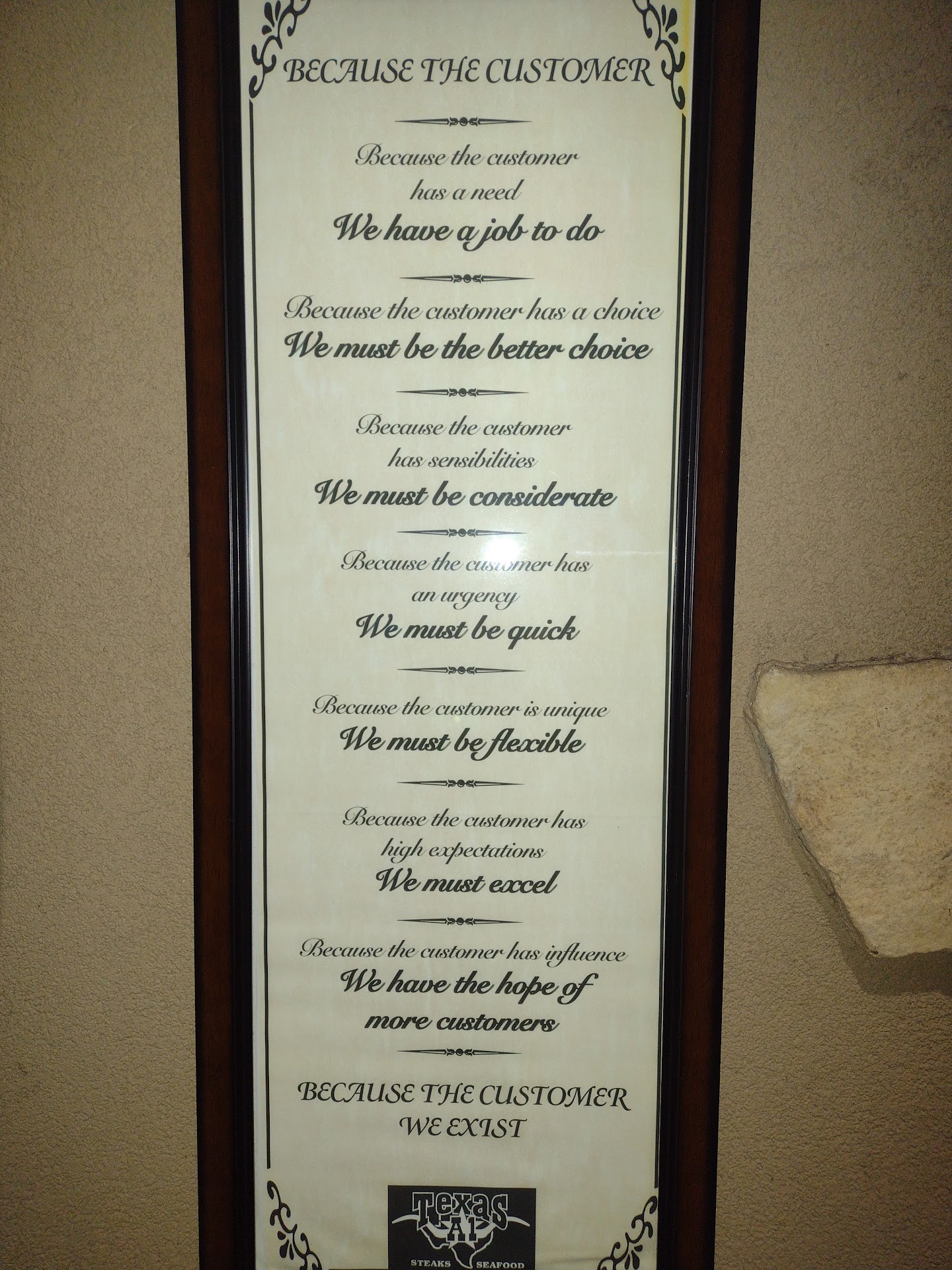 Party of two Arrived at the restaurant at about 7:00 pm or so on December 31, 2019. We were seated promptly, no waiting. That’s a good sign! Right? My Brother and is fiancée joined us ten minutes later. My wife ordered the Chicken Fried Steak and I ordered an 8 ounce steak, Medium Rare. Salad was good and the bread was good. The waitress gave us one small butter container and a small container of half and half for our bread. Finally got her to come back and it seems the butter and creamer were in the same container. Hmm! Our food was delivered to our table by a waiter. Served the plates and promptly left. My wife’s Chicken Fried Steak was tough as an undercooked boot! My Medium Rare steam was Medium Well but I dug into it anyway! It was tough and had a lot of gristle. Finally got the original waitress to come back and my wife ordered a chopped steak cooked Medium and I reordered my Medium Rare steak. Her chopped steak was bloody so she ate around the edges. I dug into my steak only to find out it was Medium Well. And still tough as a boot with more gristle than the first. My Brother had ordered fried fish and his fiancé a Salad with Grilled chicken. Their food was very good. I guess we should have ordered chicken and fish to get e good meal. Very Disappointed!
