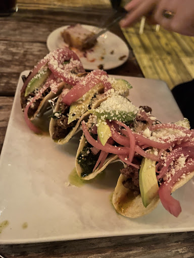 Our first time here we came for Sunday brunch. We didnât know that Sundays were strictly for brunch, but that didnât deter us from trying out the items on the menu. To start, we got the smoked salmon spread and the deviled eggs. The salmon spread was good with the toasted sliced bread. The deviled eggs were good as well, I loved the to slight taste of truffle and the heat from the sliced jalapeño. My husband ordered the Closed On Sunday breakfast sandwich per our waiterâs recommendation. He didnât enjoy it, he said the biscuit was dry and it fell apart just as fast as he tried to pick it up and bite it. I got the Barbacoa Tacos and it was pretty tasty, especially the pickled red onion.