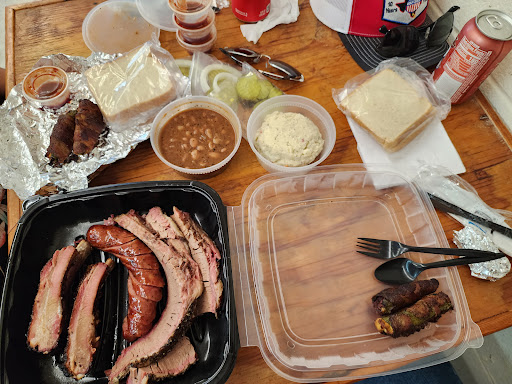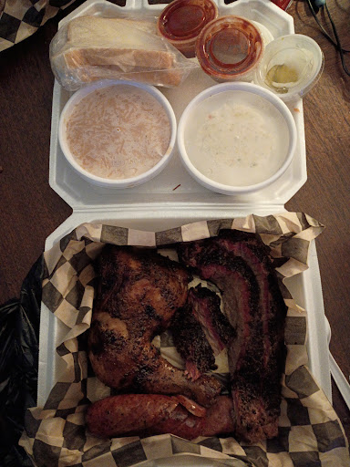 Good spread for the price. Brisket was excellent. Ribs were fall off the bone tender, to those who will say that's overdone I beg to differ. The sausage was just ok. The beans were flavorful with lots of coarse black pepper. The potato salad is like mashed potato salad like grandma used to make. The best item we had were the texas torpedoes, the best part is I didn't have to do them myself. Finding the place is a little difficult due to it being in the middle of a small shopping center. Keep up the great work, definitely...
