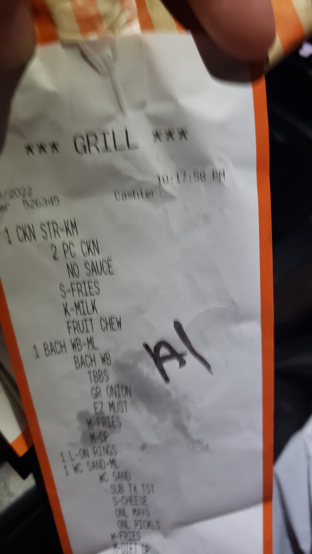 I ordered thru drive thru on 10/06/23 8:30ish. Didn’t wait long. I had 4 outta 5 kids with me and we were all hungry. We got our food and I told everyone not to touch it until we get home. We didn’t wait in line at drive thru to check because there was a line. Got home and we were missing a burger. I was prepared for the worst and me and the kids went back.(I previously had a bad experience about a month ago at a Chinese restaurant where they got me for 60$ worth of food and didn’t want to accommodate.) I walked in and as soon as a manager/shift leader saw me, he called me right over and asked how he could help. Explained to him we were missing one burger but I didn’t know what one because I didn’t want to touch the food or be accused of lying. He accused me of no such thing and it was completely the opposite. He figured out which burger was missing. He then took ALL the fries out and replaced them with fresh fries. We ended up eating inside the restaurant instead of taking the food back home. He even offered to replace our drinks but it wasn’t necessary. I just want to make sure that COLLIN get the credit he is due for going above and beyond fixing our order. We ALWAYS use this Whataburger. We never really have complaints because it is so busy here. We always expect long lines and wait times and food ups. It’s Whataburger. For us, to catch our attention, it’s the service. COLLIN made what I thought was going to be ridiculous, enjoyable lol. Thank you Collin and your crew for your hospitality at this Whataburger. Sincerely, The...