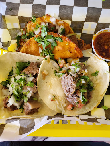 The food was fairly good. I would sorta consider this an okay takeout spot. The inside of the restaurant was a little bit off. The food was okay. I had the street tacos that were $5 each and the meat seemed over cooked. The meat might have been reheated from the previous day now that I think about it. They were a little bit over priced for what they were. We visited right before noon on a weekday. The tables and seats had crumbs on it from the night before. The tables were all meant for 2 people. The lunch rush hadn't started yet when we got there. The floor felt like there was a layer of grease on it. There's a smaller area at the front of the restaurant that has a small step down (3-4 inches). There's no sign advising it except for some small caution tape on the floor that has been there for a while. All of this and I think they also expect the patrons to buss...
