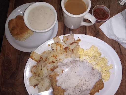 Read moreFound this place online and decided to try it out. First of all we stood in the entry for about 5 min before even being acknowledged by the waitress. She then seated us and came back I ordered a coffee and she literally bought a cup over with sugar and just walked away. Waited another 7 min to have the other waitress come over and finally take our order and I asked for creamer since I didn’t get any and the first girl was too busy checking on everyone else to come back to make sure we were ready. Food came out quick and it was good I will admit that. But we finished eating took us about 15-20 min and the waitress NEVER came back to make sure we didn’t need anything else even tho there were only about 2 other tables in the restaurant. They checked on everyone else except for us. We finally gave up and went to the counter asked for a box and the check. Honestly the WORST service I ever experienced I will never come back here again. I get taking care of your locals. But at least treat your first timers with the same care. The ONLY thing enjoyable was the food complements...