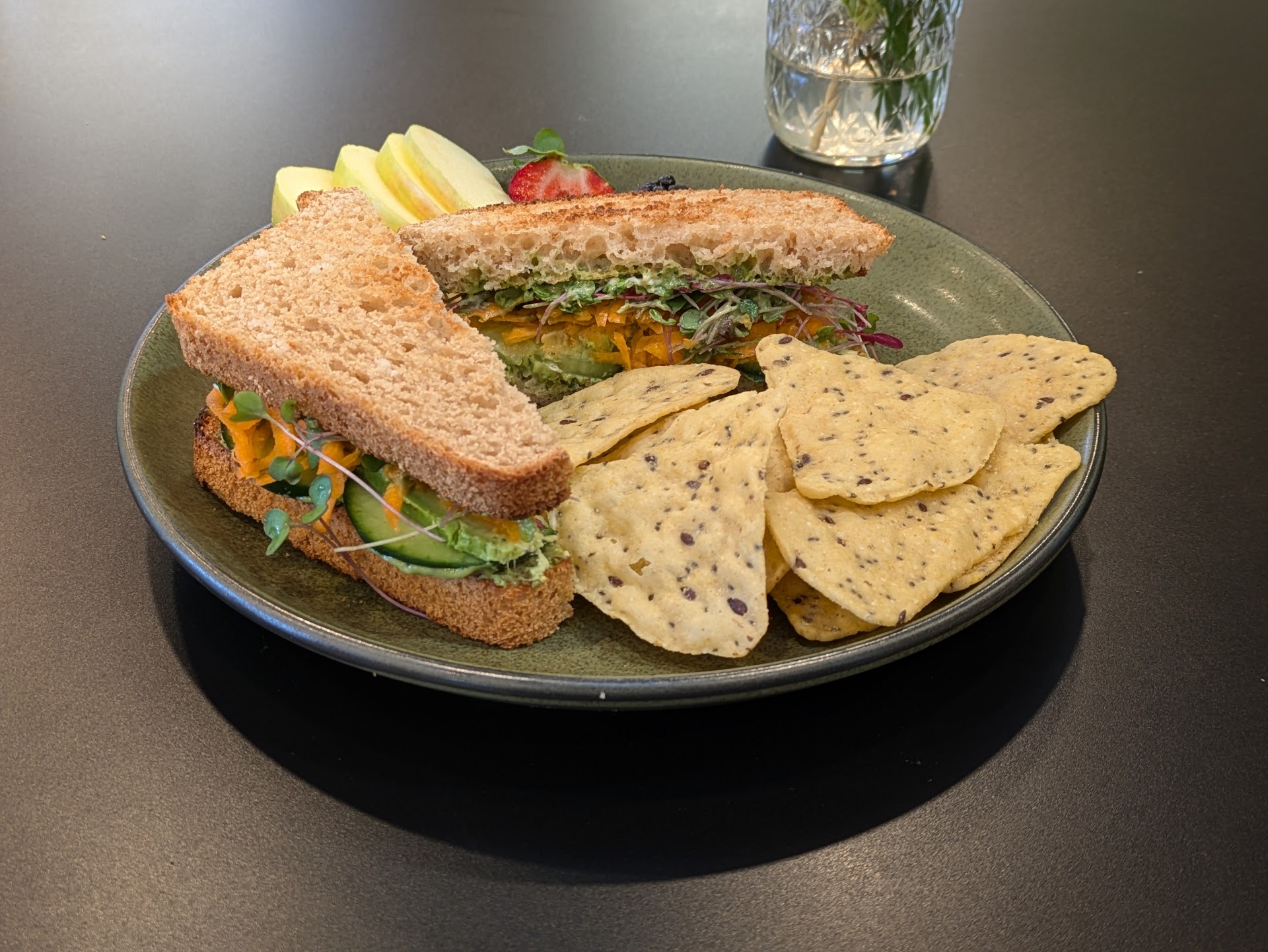 Read moreYowzas, this place was fantastic! I got the veggie sandwich, which was loaded with fresh crunchy veggies, perfectly ripe avocado and a delicious garlic herb sauce on a supertasty toasted sandwich bread - served with tortilla chips and fresh fruit. Got a fudgy oat brownie to split with a friend later, and it was equally delish. Everything on the menu is gluten-free! I'm picky about what I eat, and Ants on a Log fulfilled all my hopes and dreams. Staff is friendly; space is open, airy and pleasant. Restroom is large, bright and clean. Windows open to outdoor seating and greenery on one side and adjacent bouldering gym on another. I've already rerouted my Saturday plans to include a trip to Corvallis - specifically to hit this eatery. Three cheers for...