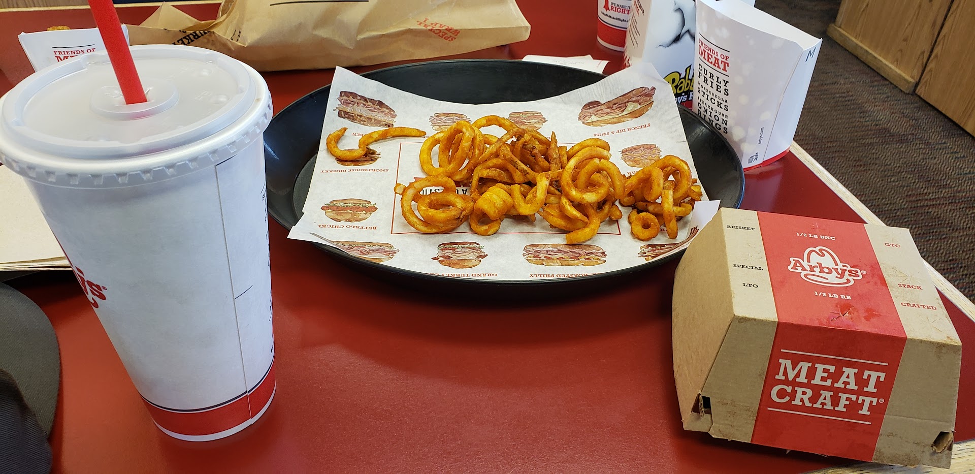 This Arby's was the closest to where we live, all of 2 solid hours away. We got up on a Saturday specifically to go to Arby's because we both missed their food so much (we come from the Midwest where Arby's is the primo sandwich king in the industry). Imagine our disappointment when we got our food and it was lackluster. I'd been craving a Jamocha for weeks and the damn machine was down until Monday. The roast beef classic sandwich tasted off, hard to describe, but just off; maybe they use different sauces or beef in this franchise. My gyro was okay but it looked and tasted sloppy; perhaps it was just thrown together without ensuring the correct proportions. While the staff was semi- friendly, and even though we told them we had been craving Arby's for months after driving two hours specifically for it, I got the impression none of them cared even to even try to show us gratitude by making the minimum effort into ensuring our food was at par or better. We're quite displeased and won't ever go back to that one, maybe a different one, just maybe, but not ever back...
