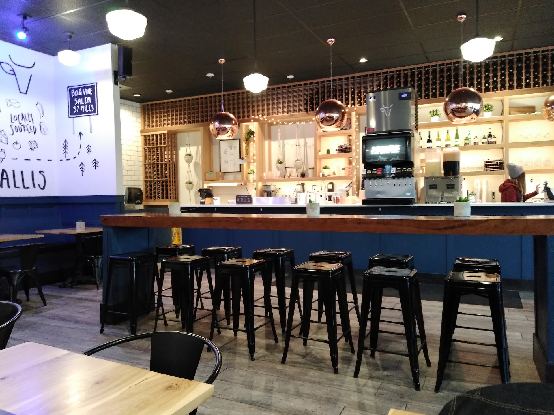 Read moreStopped by Bo & Vine Burger Bar in lovely downtown Corvallis, and found a hidden gem !! Don't miss this place if you love burgers, beer, or wine! Place very clean, staff super friendly, handicap accessible parking, entrance and handicap accessible unisex single restroom, customers only. 🚻 Cute local art, loved the vibe here.