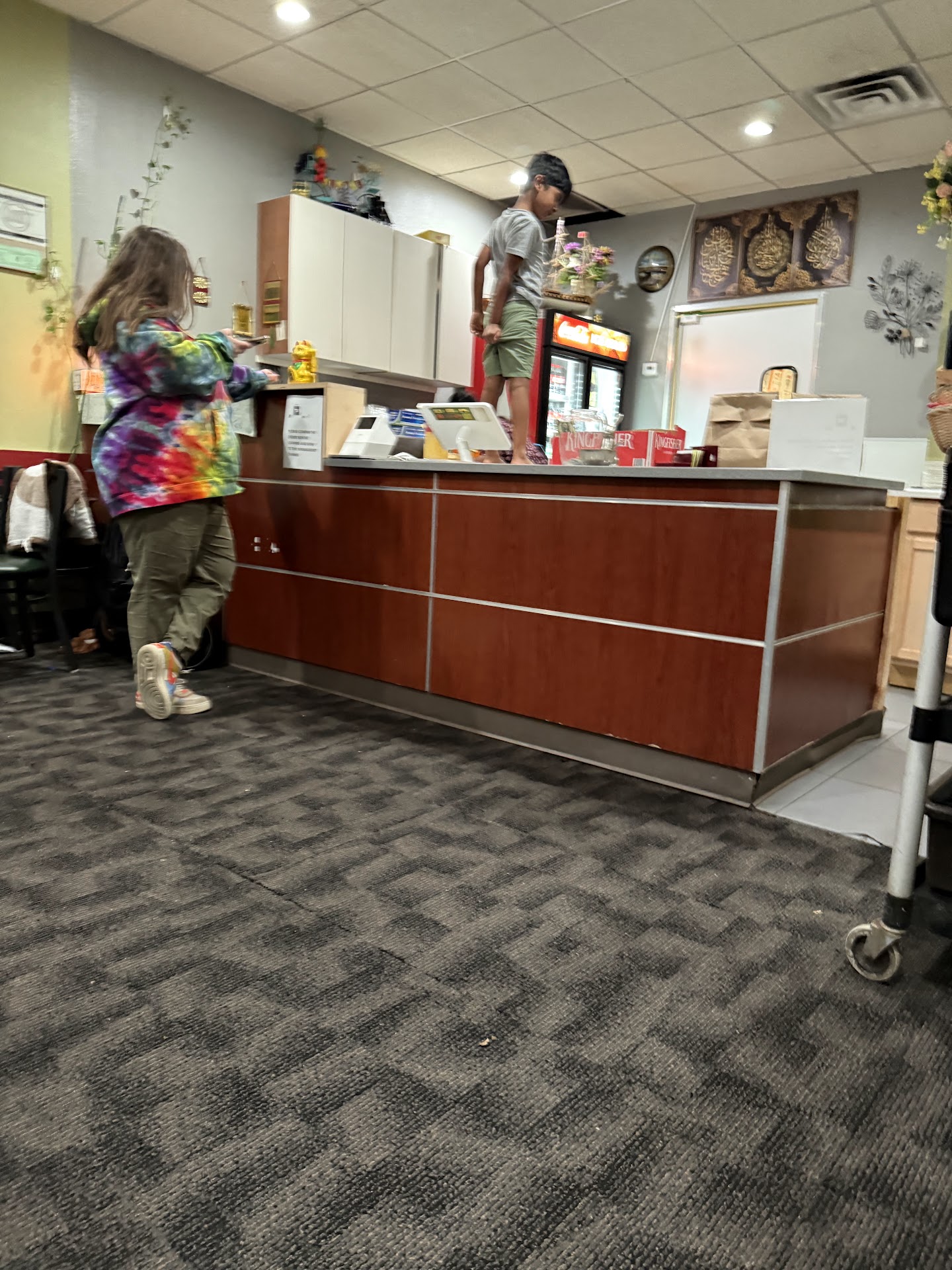 One of the most bizarre takeout experiences I’ve ever had. Walked into a restaurant with only one table of diners. The place had a very unpleasant dirty smell. There was nobody behind the counter except for a 6-7 year old boy playing with a hot wheel on the counter. I shortly discovered he was barefoot. In typical fashion, one of the tables had been converted into an office, and a woman was sitting there balancing the books with her children nearby. There was absolutely no acknowledgment given when I walked in. I never saw them acknowledge the person waiting in front of me. A man, the husband, came out and eventually closed out the one table of diners (they spoke the same language) and then proceeded to start bussing tables. I was still standing there unacknowledged. It was easily 6 minutes before anyone even made eye contact with me. In the meantime, door dashers are coming in, equally unacknowledged. Finally he turns to me, asks me my name, and says it’s being made. Also, the boy running around barefoot starts throwing a fit in the dining room, screaming and knocking things over, playing and slamming the front door. Eventually, the woman goes into the back with her baby, and another 5 minutes later, comes out with about 5 orders. Clearly they didn’t all come out at the same time. In all, despite my 20 minutes estimate, I ended up waiting 40 minutes. In an otherwise empty restaurant. Clearly DoorDash props this place up, and they treat them with disdain. The real kicker was when the barefoot child climbed onto the counter top, the one they were about to put the food on, and stood on it. No real urgent attempt was made to remove him. He was walking into and out of the kitchen barefoot as well. It instilled a sense of fear into me as I brought my food back to my hotel. I considered just walking into the kitchen to inspect for myself, since it seems like I was invisible anyway. The food, I will say, tasted fairly good. But it wasn’t worth worrying about the cleanliness of the place. My stomach may be sensitive, and it certainly didn’t sit well with me, but I can’t really say that’s a result of cleanliness or hygiene. I sympathize with it being very much a family restaurant, but there is absolutely no respect given to their patrons (unless, perhaps, you speak...