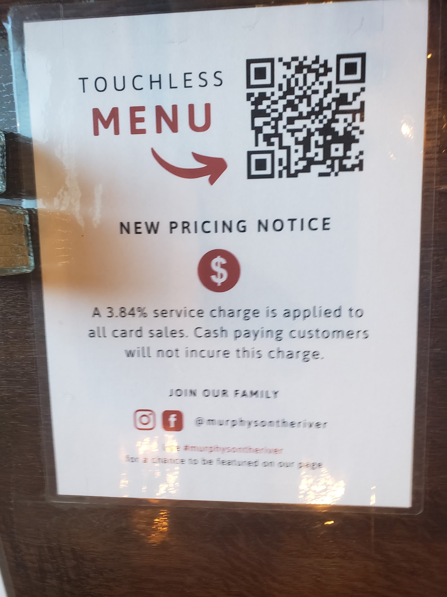 One other oddity, was that they charge a 3.84% service charge on cards for payment. As someone who works at a credit union I understand that Visa charges per transaction. However, to pass this off to your customers AND round UP is kind of shady.