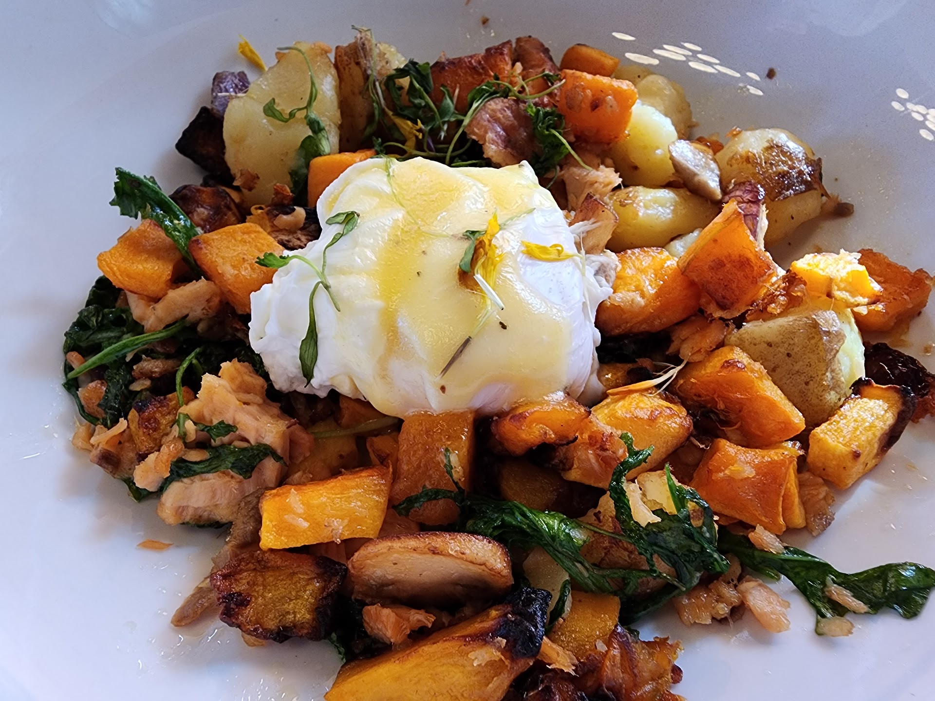 We checked out Odd Bird's menu and reviews and chose to eat there on Father's Day while driving to Corvallis from McMinnville. The facility was pleasant and the location great. The restaurant was not at all busy at 1:45 on Father's Day, which surprised us a bit, and we were seated immediately and given menus. It didn't take long to order drinks which came quickly. Our server, Shawnee, came to take our order 5 or so minutes later. My husband ordered the salmon hash, which was the main reason we chose Odd Bird, and I ordered heirloom tomato "Benny" (aka eggs Benedict). I was given the options of several types of potatoes or fresh fruit. I chose the fruit. We waited and waited. Shawnee didn't check in with us at all even though my husband had coffee and would normally be offered refills periodically at most restaurants. We waited least 20 min. when Shawnee came to announce there was no more salmon. My husband was given a couple options, one of which was shrimp hash, which he chose. We then waited, and waited again. Shawnee didn't come over and we had to get her attention to get a coffee refill. Finally our food arrived...probably 10-15 min. after the hash change making it 30+ min. since our initial order. The dishes were really beautiful and we were hungry! Soon after we were served, Shawnee stopped to ask how things were. We said good, but we hadn't gotten into the meals totally yet. My husband liked the potatoes and portions of the hash but the shrimp was chopped up, soggy and tasteless. My heirloom tomatoes were hard and tasteless but the eggs were good and the hollandaise was okay. The fresh fruit was very good. We finished up quickly and sat for many minutes waiting to ask for 1 to go for my 1 uneaten eggs bene. The box and bill came. We were surprised to see an additional $2.00 charge for the fresh fruit. When Shawnee came to get the payment I did let her know she'd not told us there was an extra charge for fresh fruit. She essentially said it was toward the end of her day and didn't know what she was saying. She didn't offer to remove the charge. I should have insisted. Payment was done using a handheld machine which Shawnee was holding. I signed the machine and then the tip screen appeared. Shawnee was holding it and I felt uncomfortable with that. I did select the lowest % tip shown although there was a custom choice. My husband did not want to give any tip (we have been together 32 years and he's only not tipped twice) but I felt intimidated. So, long story, but we will not return to Odd Bird. Also, I strongly recommend the server either leave the handheld on the table and give the customer privacy or use some other more private method. It was a very disappointing Father's Day dining experience for my husband and that's what...