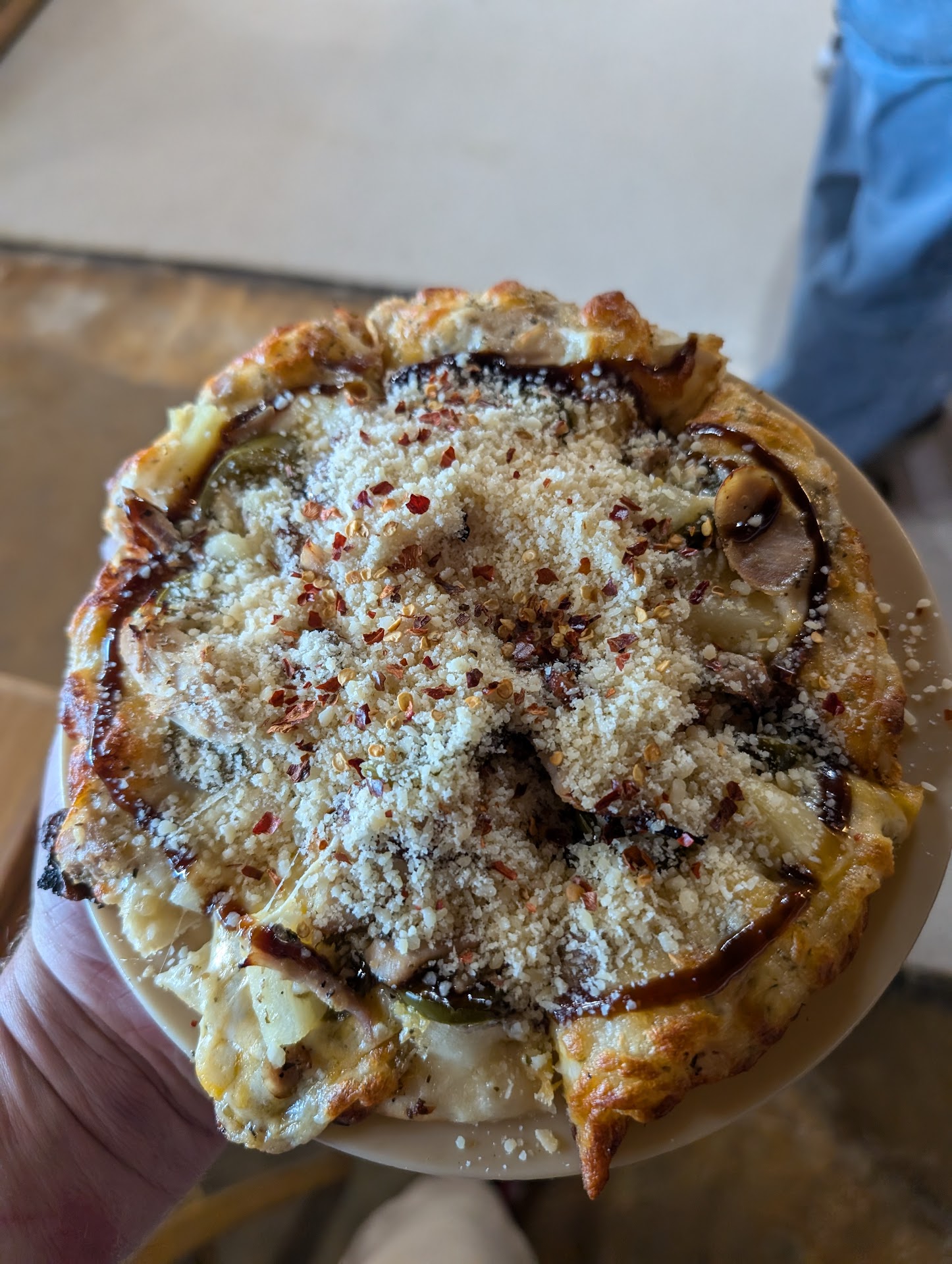 It was busy, obviously a family place. With the play area it's great for kids 8 and under. Pizza was great. But we were here for a birthday party. The place was very hot ans stuffy. With a full room it would have been great to have the fan on but no one seemed to know how to turn it on.
