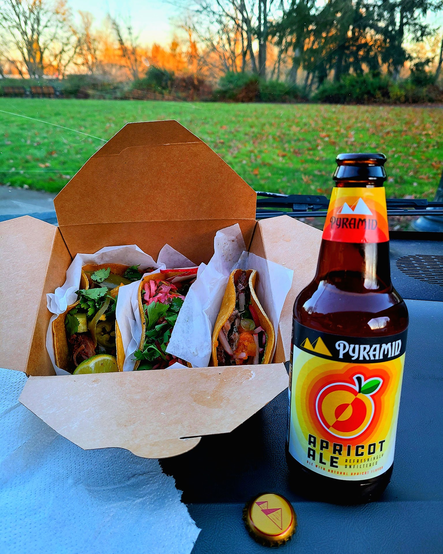 Yesterday was one of the first days of spring in Corvallis and Taco Vino had 6-8 tables outside under a canopy. It was a pleasant inviting space. Instead of sitting there we took our tacos across the street to the riverfront park where they had half a dozen benches and a couple picnic tables.
