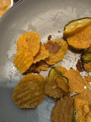 Wings were just okay, fried pickles were over cooked, all the breading was separating from the pickle, and my kids chicken bites were so overcooked they couldn’t eat them. The real tragedy was that Mac n cheese though. It tasted awful, like something that would come on a jail tray or be served at a school. The microwaveable kind tastes better than that.