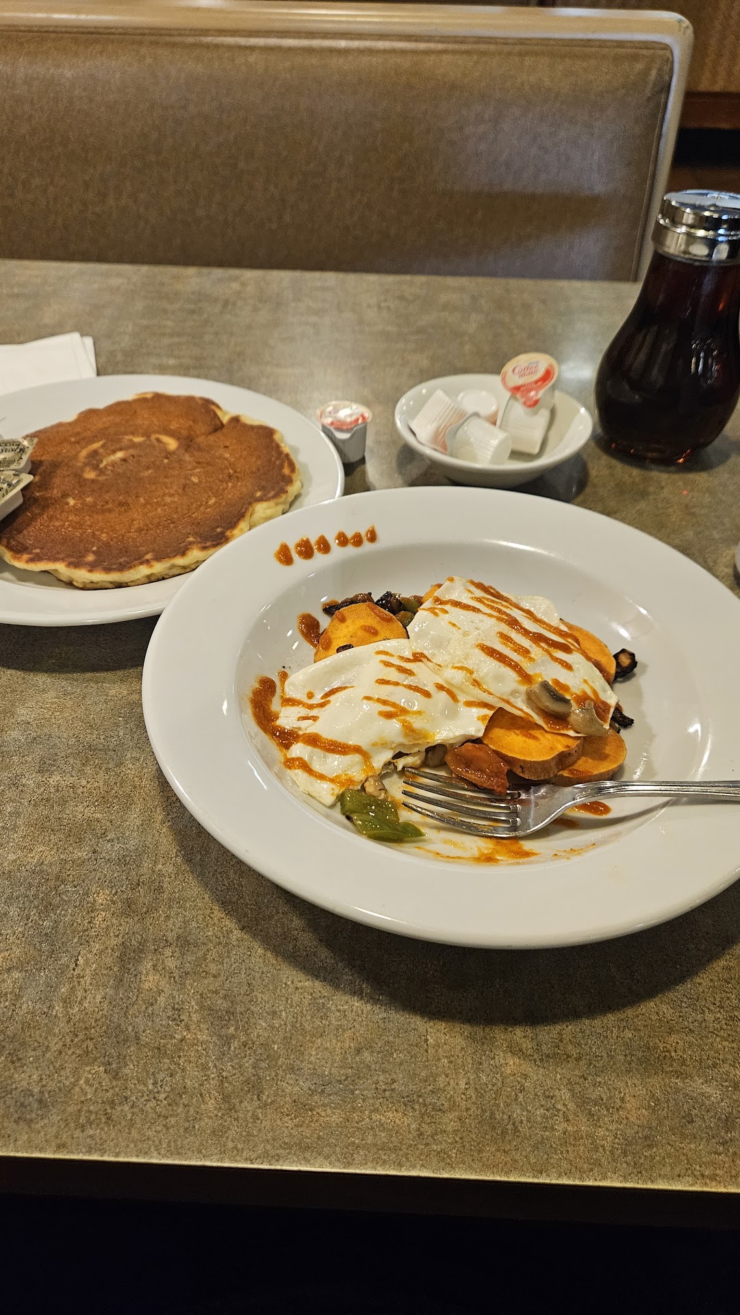 Read moreThe food was OK. Service was lacking. They don't have a hostess, and the servers would walk right past those waiting to be seated while there were plenty of empty tables. Once seated, it took almost 15 minutes just to give our drink order. Asked for sugar since they only give each table 6 packets and never got it. Our server didn't come back once our luke warm food arrived. I waited so long for my bill that the rest of my party went to the grocery store part and the busser had cleared my table. Slow service and...