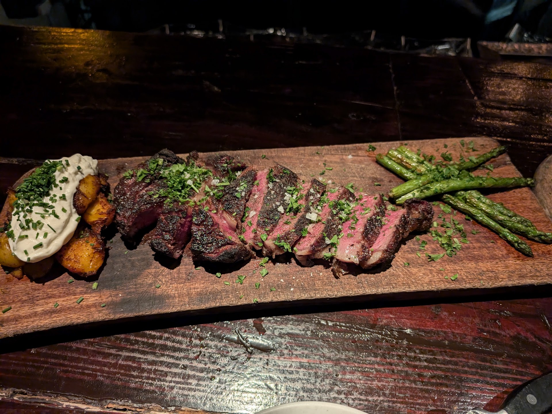 Duckfat potatoes: cannot believe they served us burnt to the crisp.. literally all black on the outside with a very thick crust with potato you had to dig out from the middle. NOT like the pictures. This was not the only with this app but also the same with our steak... Maybe the chef and staff felt overwhelmed with the guests and forgot our order in the broiler?