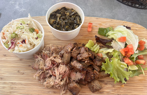 I like this place. Staff is friendly and considerate and even though it is an order at the counter type of restaurant they still make a point of coming out to check on you to make sure that your food is all that you hoped it would be. I appreciate that. The food is good. The ribs are some of the best I've ever had. The focus in this restaurant is really the meat the barbecue sauces are not the big deal it's the meat. And the meat is very good. I also think the potato salad and baked beans are great the blueberry cornbread was good. I've also had the Stacked house I think it's called which is brisket and pulled-pork sandwich I enjoyed that very much. My husband loves the tacos. They are just a pile of good white meat chicken on a couple of tortillas but for him that's exactly what he loves. So if you want a good reliable BBQ experience this is the place. The only thing I would say is that they are sauces could use a little Improvement. They're not quite as full-flavored as I would like. But as I said the meat is the star this place that in...