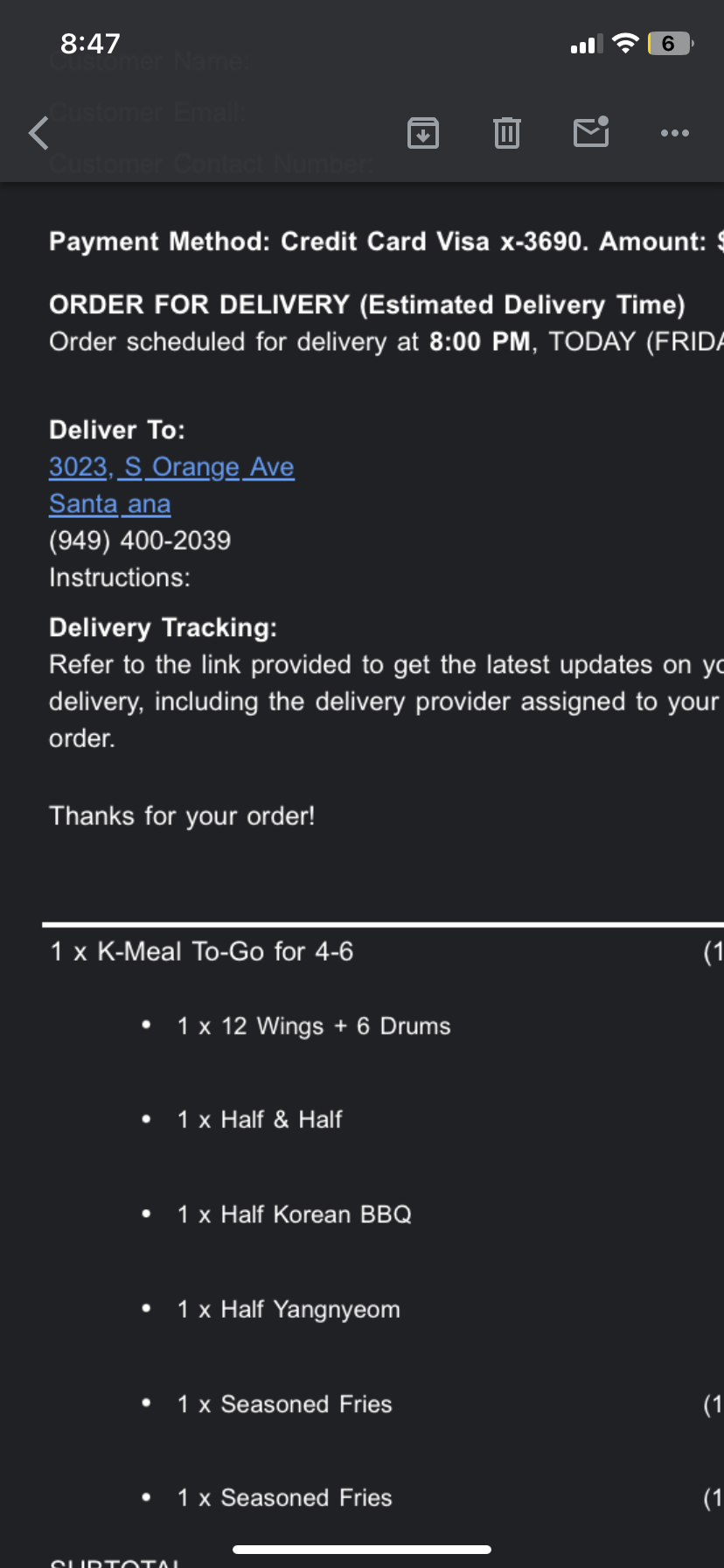 So then i called bonchon to correct the issue and cancel/refund me for my $67 dollar order of food, Charlie was working on site that night on 12/20/24 at the costa Mesa location, he said he would have to ask the manager if he could refund my order, they then stated they were not going to refund me or cancel the order at all
