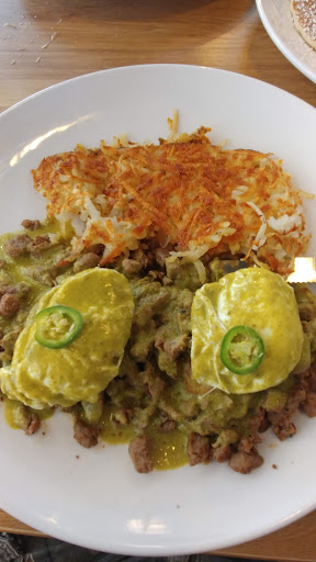 Read moreThis place was recommended by many which ended up as a disappointment. I'm latina so I really expected big flavors from here but everything was bland. I ordered the green chillaquiles and it was very dry. Looked good because I took a picture of it but flavor was lacking. There was no salsa for the chillaquiles, my chips were hard hard hard, meat was steak but was greyish for some reason and had no flavor either. I actually had to add salt because it was so plain . I also asked for no onions on mine and they still added them. 🙄🤷🏼♀️🙅🏼♀️🧅 Felt like I was eating nachos instead of a real Mexican breakfast. 👎🏻 My bf ordered one of the eggs Benedict with chorizo and he hated it.( Don't think I took a picture of it sorry) The tomatoe sauce has no salt no flavor nothing. Like they opened the can and dumped it in there. Not gonna lie the food looked good but it just didn't taste good. The guy who was our server also didn't even give us utensils when he sat us down, when he took our order and even when they brought the food. We had to ask someone else for help. I only took my food to go because I felt bad that my bf paid so much money for such bad food. He left his entire plate. Didn't take anything. I ended up throwing mine away when we got home. We also didn't feel so good afterwards from there. Definitely ruined our Saturday brunch date and it made us loose our hunger. I wouldn't waste my money there unless your into white washed Mexican food with no flavors. Pricey and Bland...