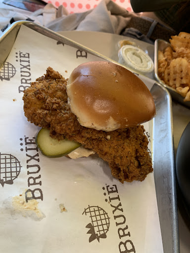 Read moreBruxie at South Coast Plaza is located in Bloomingdale's along with other vendors. We ordered The Crispy, tenders, loaded waffle fries, and a grilled chicken salad. The CRISPY sandwich was well seasoned perhaps a tad too salty for me however it was nicely crispy on the outside and juicy on the inside. Honestly $13 for just the chicken sandwich (no fries and no drink) is wild to me. The Nashville hot TENDERS were tasty and not hot at all, just mild and the waffle fries were very good. The LOADED WAFFLE FRIES were delicious and coated in sauce and bacon bits. Plentiful to share. GRILLED CHICKEN SALAD could feed two people. The dressing was drizzled on and topped off with avocado slices, a sliced hard boiled egg, diced tomatoes, cheese, and bacon bits. Two chicken sandwiches, 3 tenders, loaded waffle fries, and a salad was a whopping $70. Dipping...