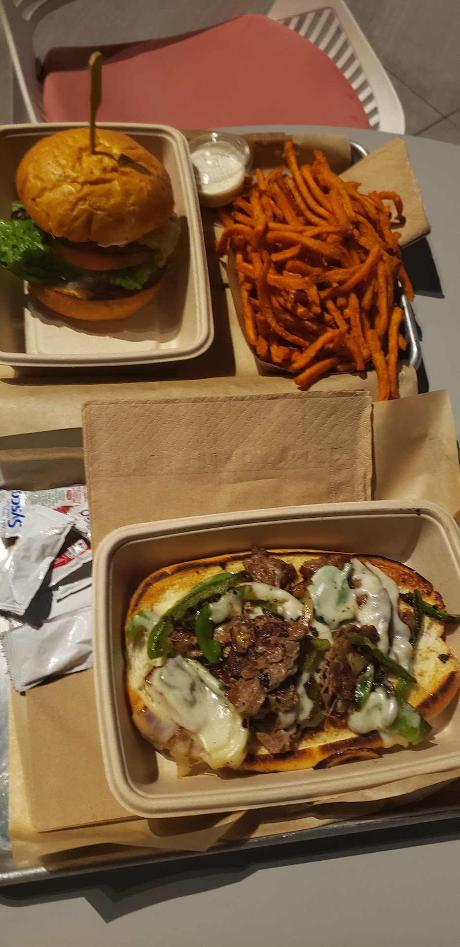Read moreThe staff is friendly and location within the complex is great; next to performance stage for events. We ordered hamburgers with fries; good but not exceptional. The dining area is reserved for customers; signs indicating that are posted at entrances. Unfortunately during a recent program, "Grito," a group of non-customers took three of the best tables and brought there own food and wine (bottles). Very irritating to customers searching for a table. Recommend that staff/security enforce...